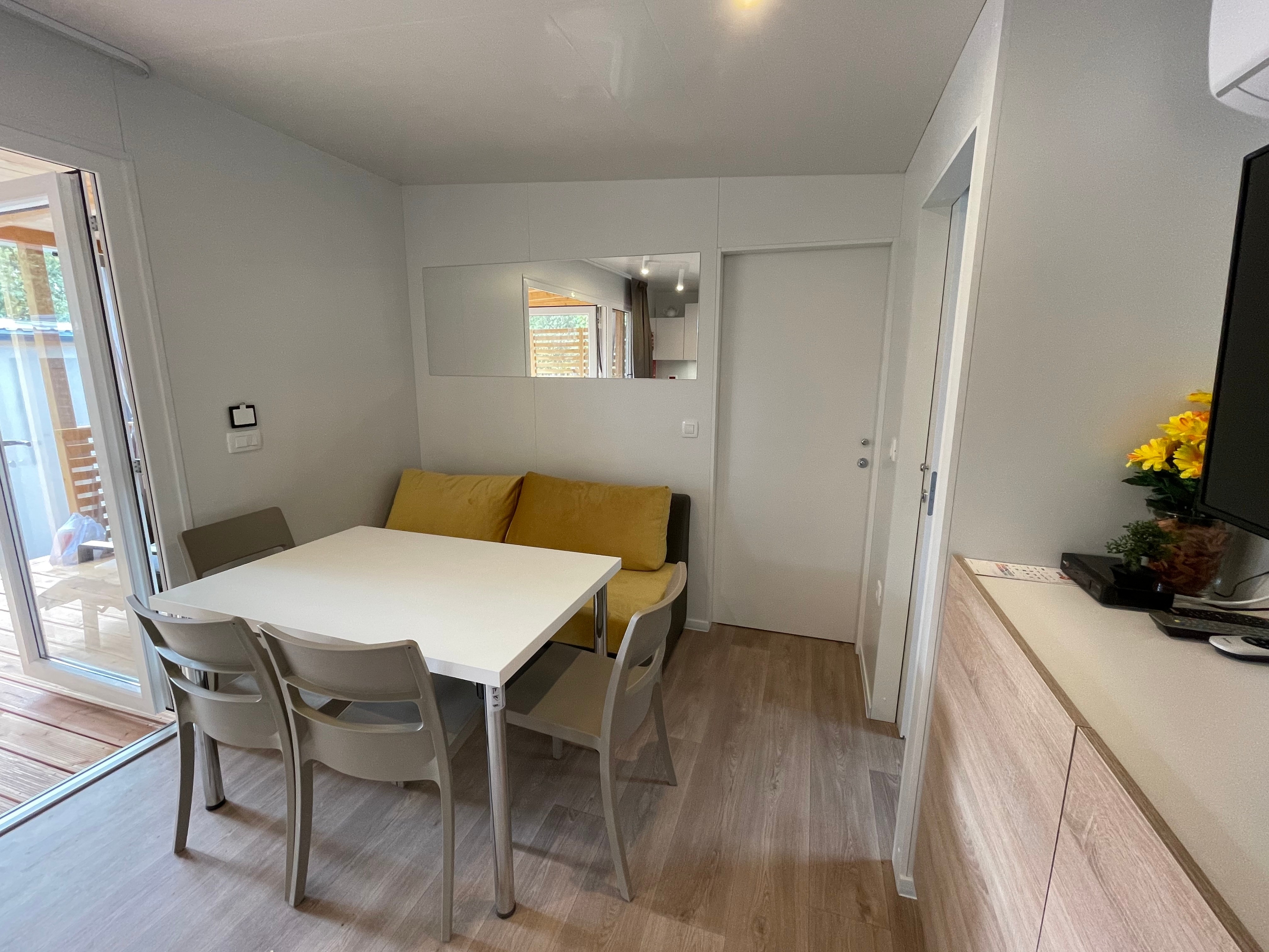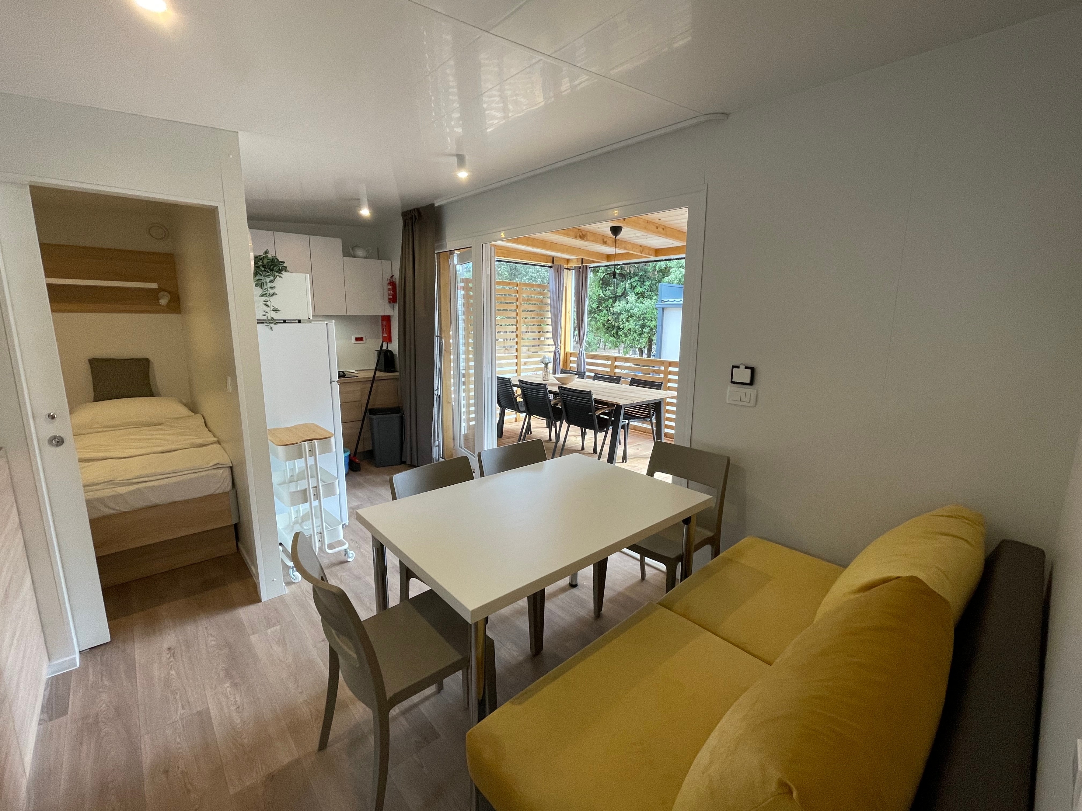 Apartment can accommodate 5 guests. Beds are situated in 2 sleeping rooms, but also in the living room, within 37m2. Guests can use a private terrace to enjoy the warm summer evenings. For full enjoyment and relaxation there is a private barbecue for this accommodation guests only. INCLUDED IN THE PRICE: final cleaning, air-conditioning, parking, internet, iron, ironing board, hairdryer. OBLIGATORY ADDITIONAL COSTS: tourist tax (adults €0.93 - €1.50 nightperson, discount for children aged 12 - 17). OPTIONAL ADDITIONAL COSTS: laundry (€7.00 washing). The availability of additional services for your chosen dates of stay, as well as their prices (if none are listed) must be checked ahead of time. Any additional services not shown in the price calculation are payable directly to the property owner and only if used by the visitor. Discounts to the base price: free day 14=13 (for reservations of 14 or more days you get one free day for the stay until 31122026).
