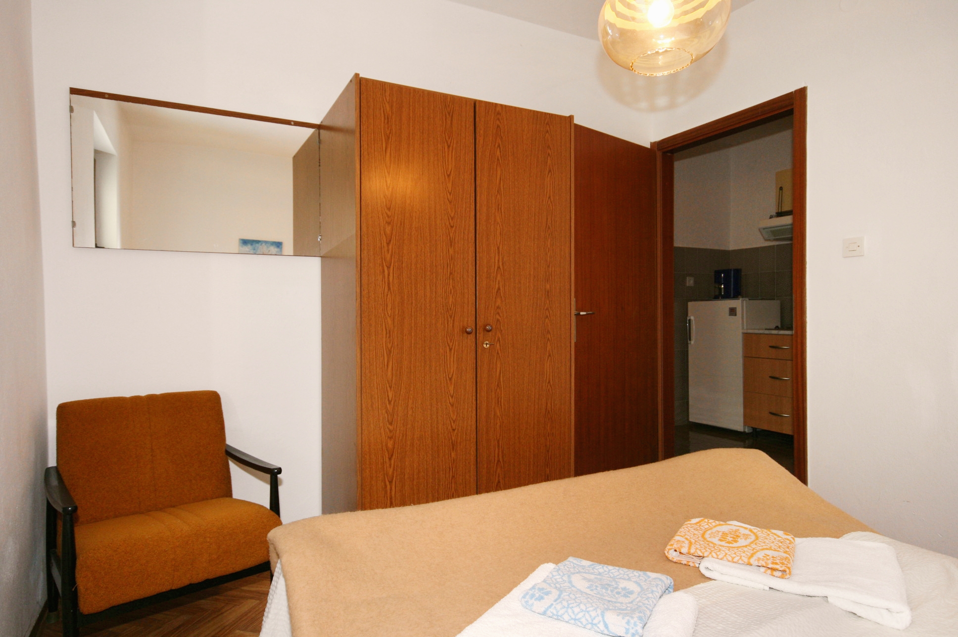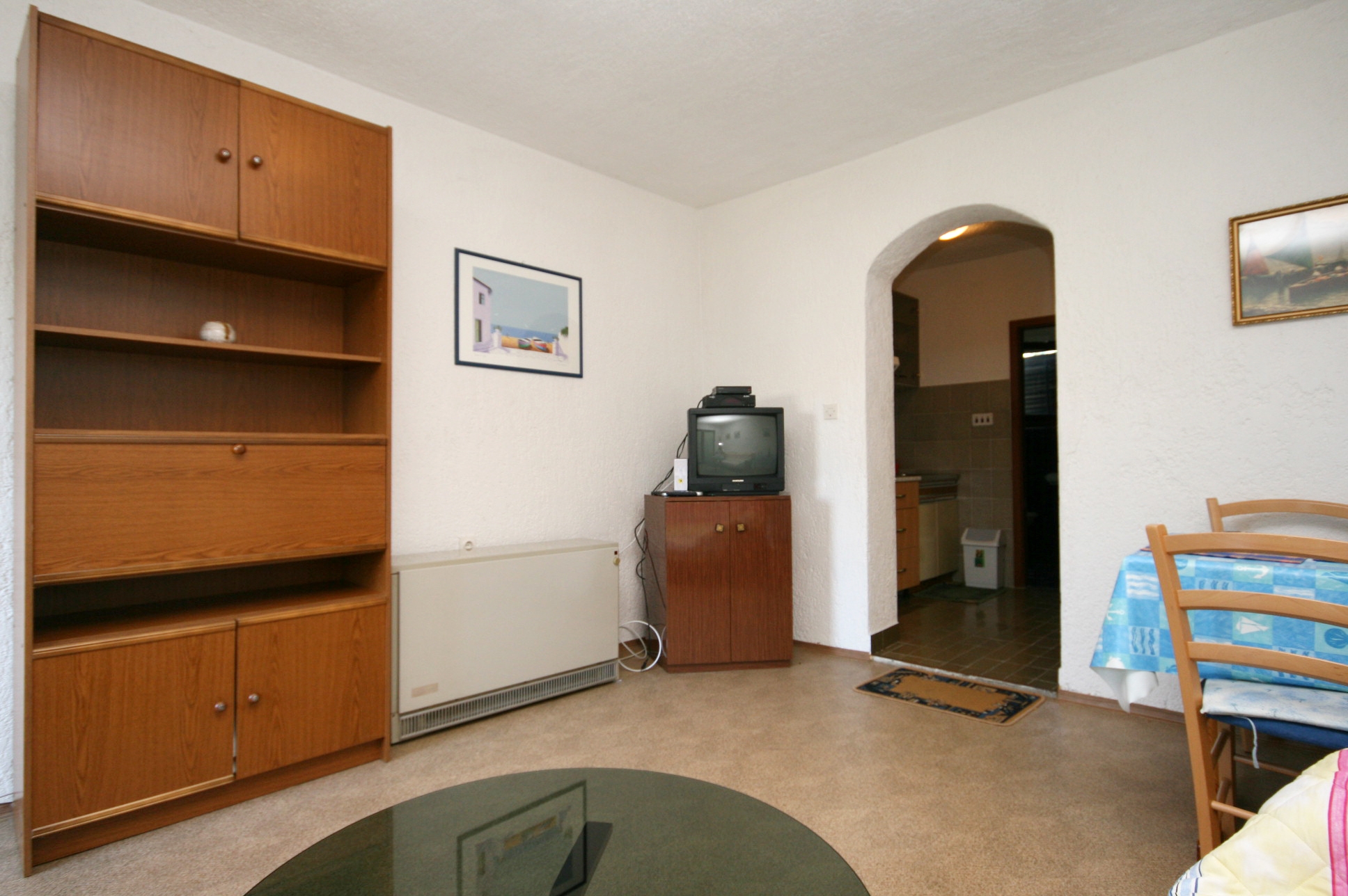 Apartment can accommodate 4 guests. Beds are situated in 1 sleeping rooms, but also in the living room, within 35m2. Guests can use a private balcony to enjoy the warm summer evenings. Food can be prepared using barbecue which is shared with other guests too. This accommodation unit welcomes pets at an additional charge. INCLUDED IN THE PRICE: tourist tax, final cleaning, air-conditioning, parking, internet, iron, ironing board, hairdryer, sunshade. OBLIGATORY ADDITIONAL COSTS: short stay fee (surcharge depending on a number of booked nights: 30% - 1, 20% - 2, 10% - 3). OPTIONAL ADDITIONAL COSTS: laundry (€10.00 washing), pets (€10.00 per night), additional bed (€8.00 per night). The availability of additional services for your chosen dates of stay, as well as their prices (if none are listed) must be checked ahead of time. Any additional services not shown in the price calculation are payable directly to the property owner and only if used by the visitor. Discounts to the base price: free day 14=13 (for reservations of 14 or more days you get one free day for the stay until 31122026).