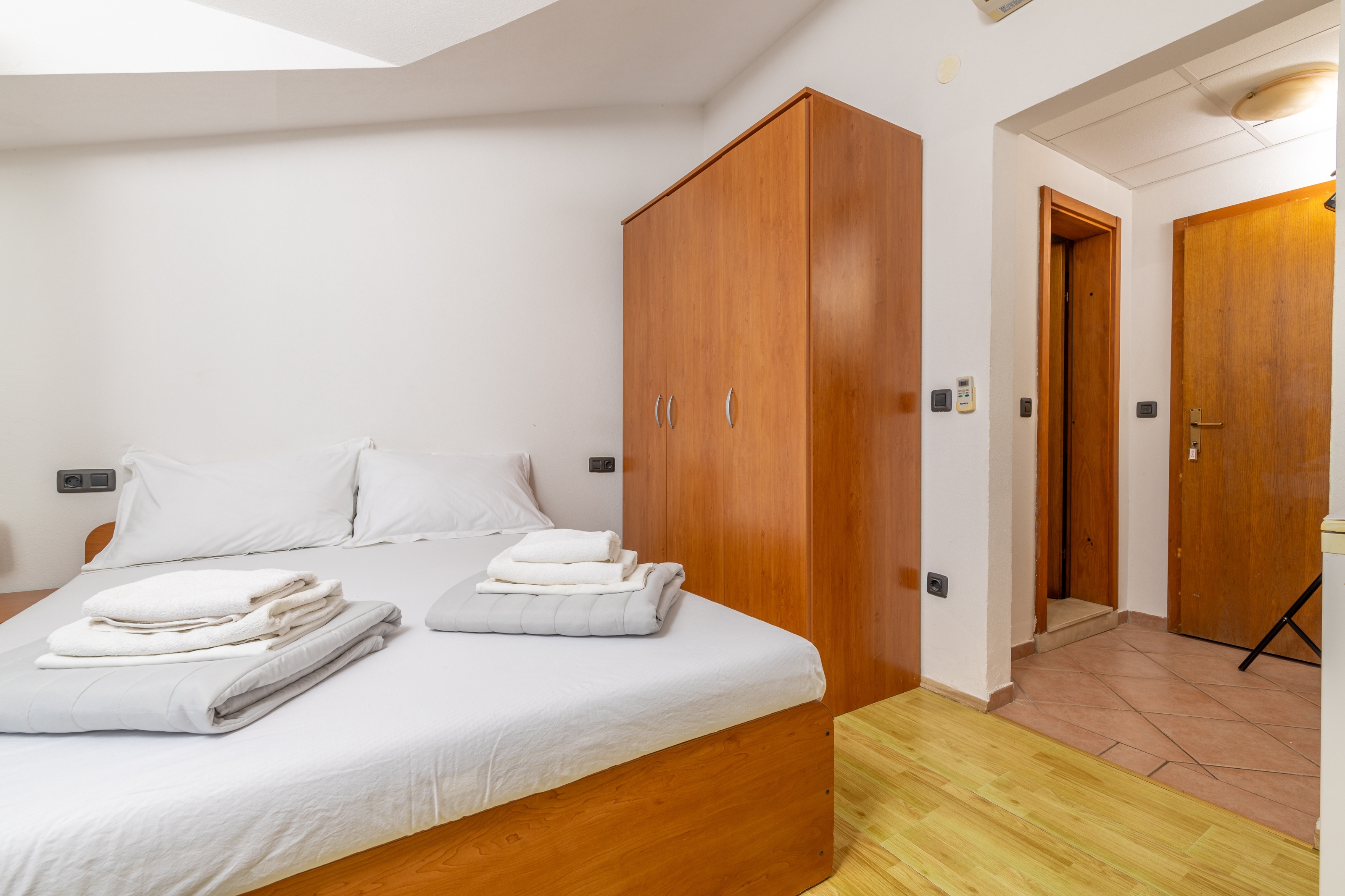 Studio flat can accommodate 3 guests. Beds are situated in 1 sleeping rooms, within 16m2. Guests can use a private terrace to enjoy the warm summer evenings. The studio offers the sea view. Food can be prepared using barbecue which is shared with other guests too. This accommodation unit welcomes pets at an additional charge. INCLUDED IN THE PRICE: tourist tax, final cleaning, air-conditioning, parking, internet, boat mooring, baby cot. OPTIONAL ADDITIONAL COSTS: pets (€13.00 per night). The availability of additional services for your chosen dates of stay, as well as their prices (if none are listed) must be checked ahead of time. Any additional services not shown in the price calculation are payable directly to the property owner and only if used by the visitor.
