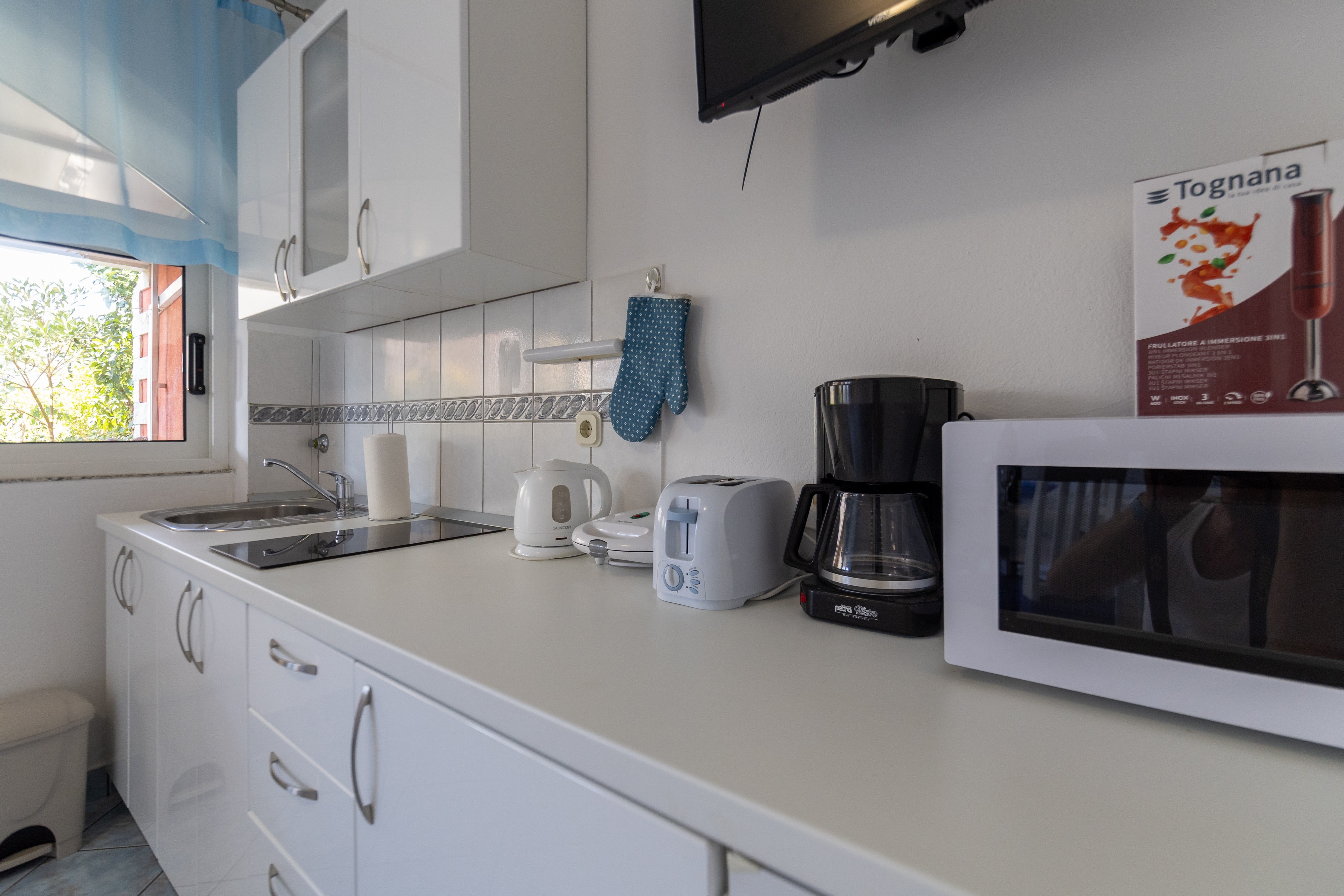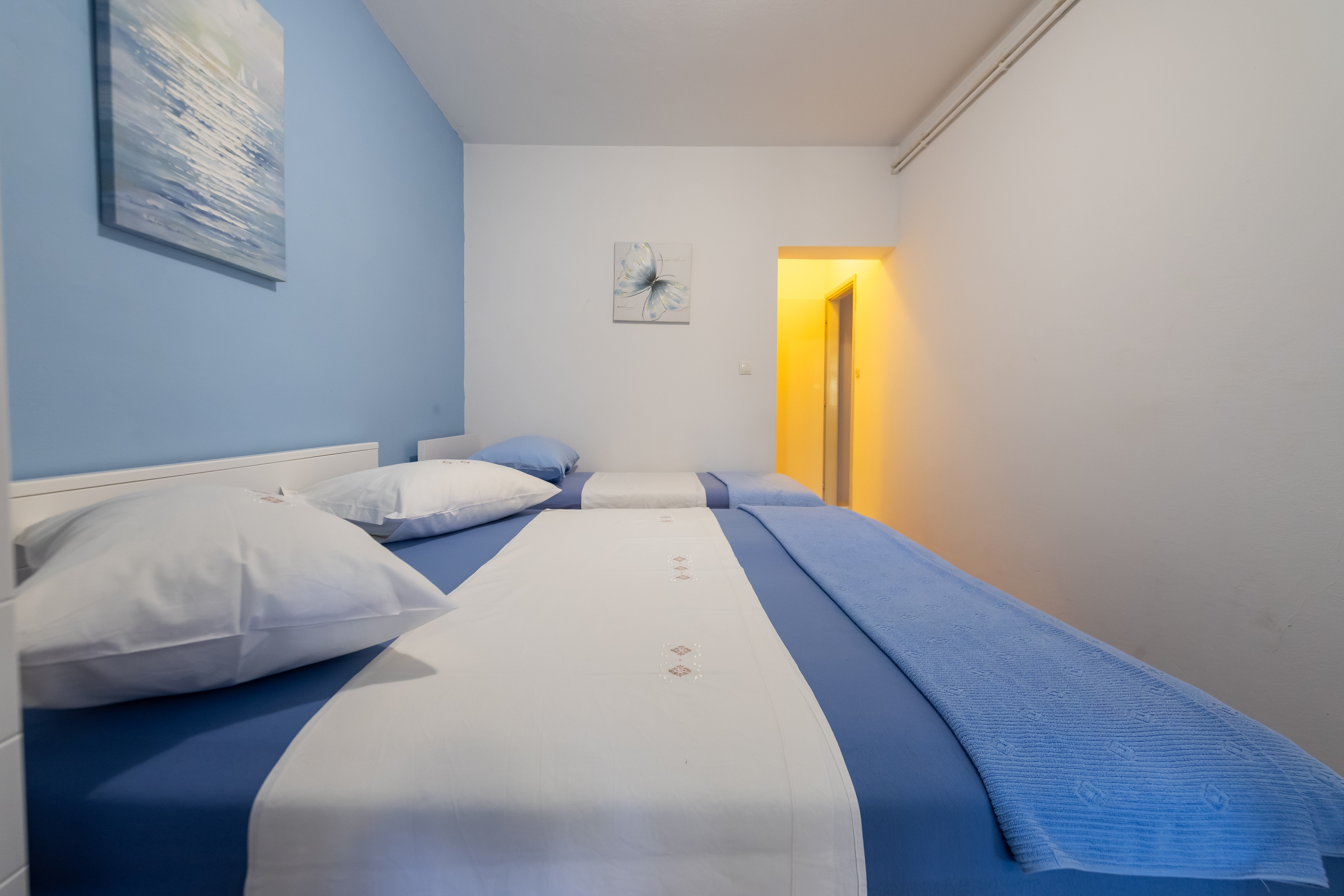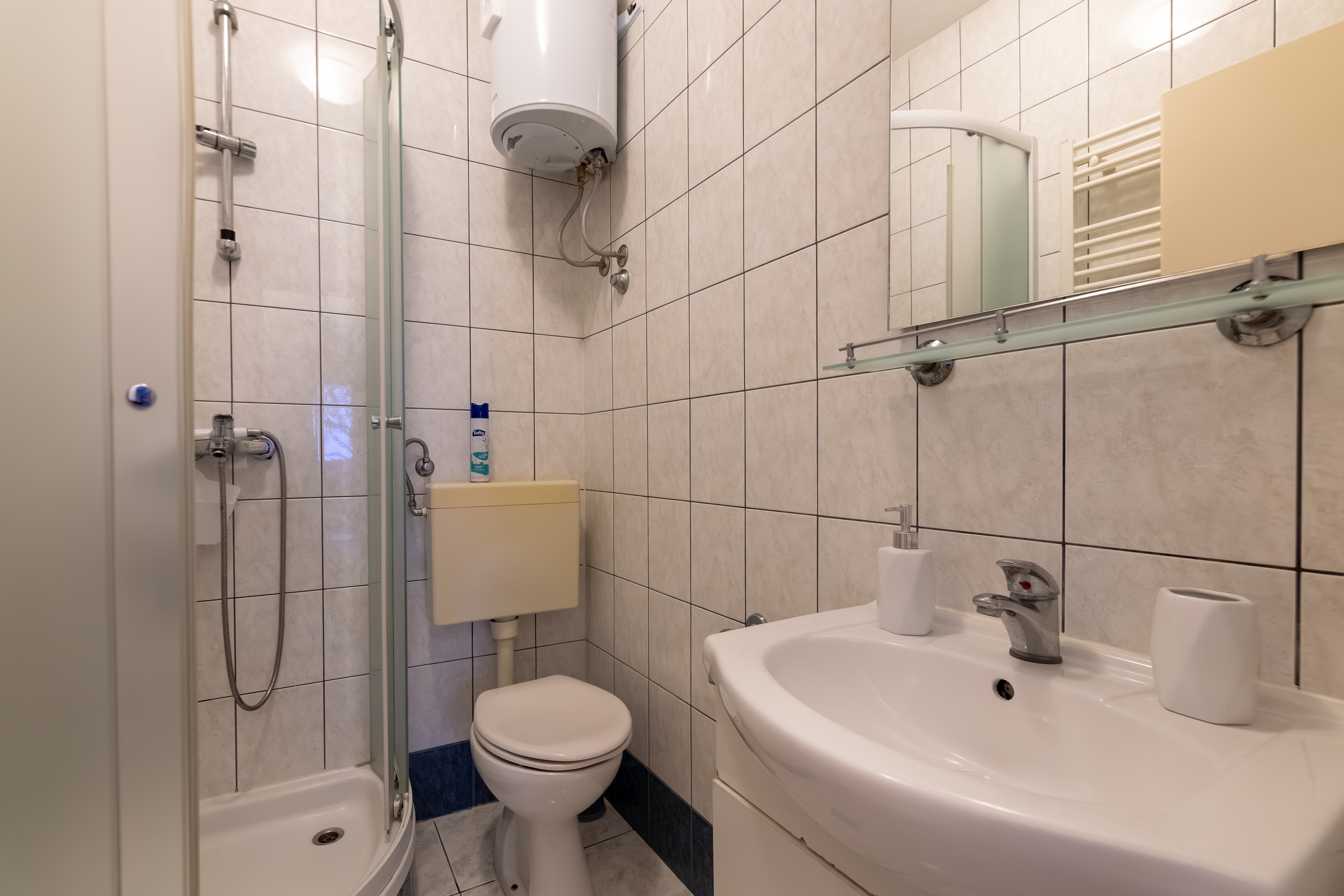 Apartment can accommodate 3 guests. Beds are situated in 1 sleeping rooms, within 27m2. Guests can use a private terrace to enjoy the warm summer evenings. Food can be prepared using barbecue which is shared with other guests too. INCLUDED IN THE PRICE: tourist tax, final cleaning, air-conditioning, parking, internet, baby cot, iron, ironing board, hairdryer. OBLIGATORY ADDITIONAL COSTS: short stay fee (surcharge depending on a number of booked nights: 30% - 1, 20% - 2, 10% - 3). OPTIONAL ADDITIONAL COSTS: laundry (€5.00 washing). The availability of additional services for your chosen dates of stay, as well as their prices (if none are listed) must be checked ahead of time. Any additional services not shown in the price calculation are payable directly to the property owner and only if used by the visitor.