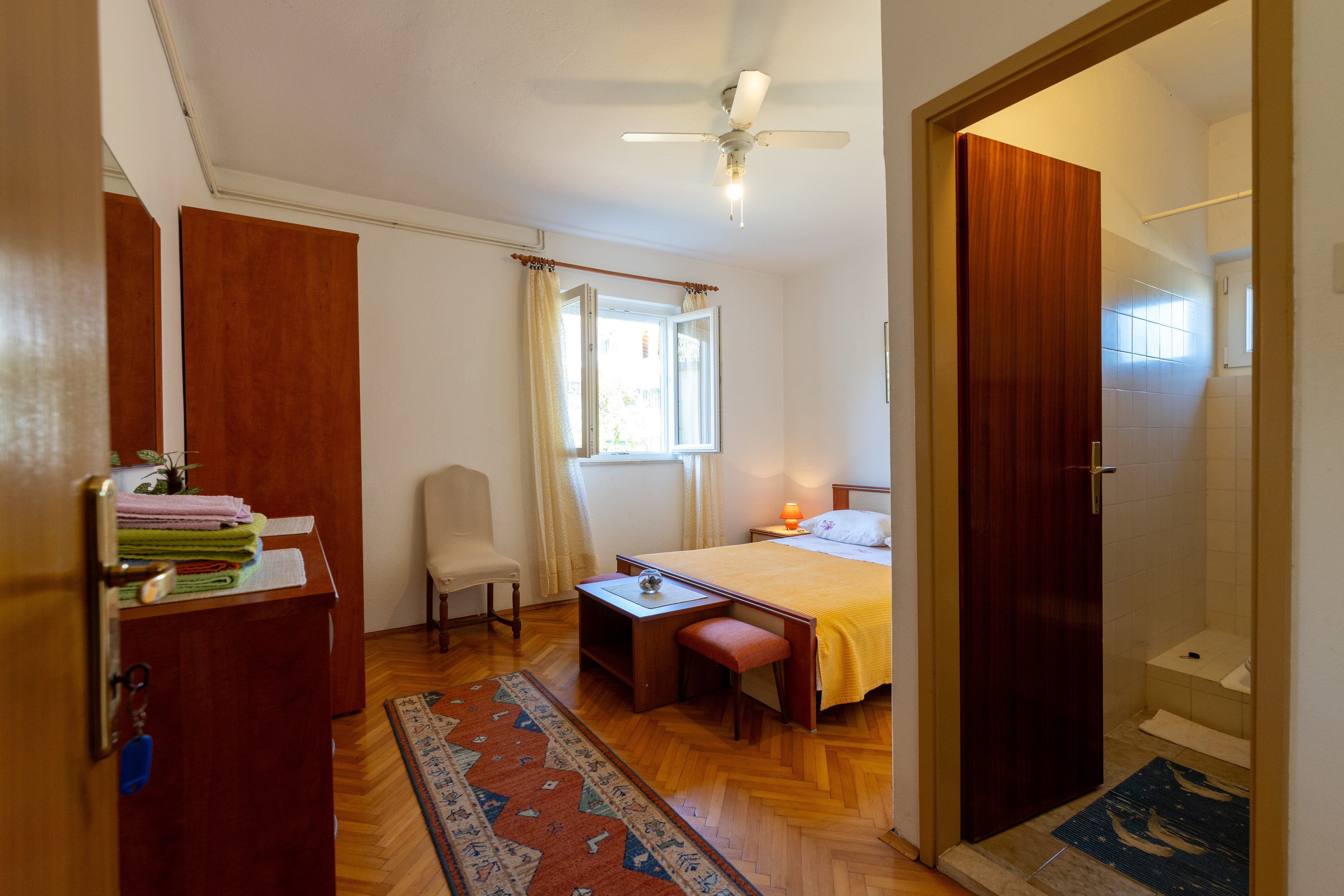 Room can accommodate 2 guests. Beds are situated in 1 sleeping rooms, within 15m2. Use of shared kitchen is possible. Food can be prepared using barbecue which is shared with other guests too. This accommodation unit welcomes pets at an additional charge. Reserved accommodation unit is a room with its own bathroom and shared kitchen at no additional charge. Reserved accommodation unit has a shared terrace. INCLUDED IN THE PRICE: tourist tax, final cleaning, shared kitchen, parking, internet, laundry, hairdryer. OBLIGATORY ADDITIONAL COSTS: short stay fee (surcharge depending on a number of booked nights: 30% - 1, 20% - 2, 10% - 3). OPTIONAL ADDITIONAL COSTS: pets (€5.00 per night). The availability of additional services for your chosen dates of stay, as well as their prices (if none are listed) must be checked ahead of time. Any additional services not shown in the price calculation are payable directly to the property owner and only if used by the visitor. Discounts to the base price: free day 14=13 (for reservations of 14 or more days you get one free day for the stay until 31122026).