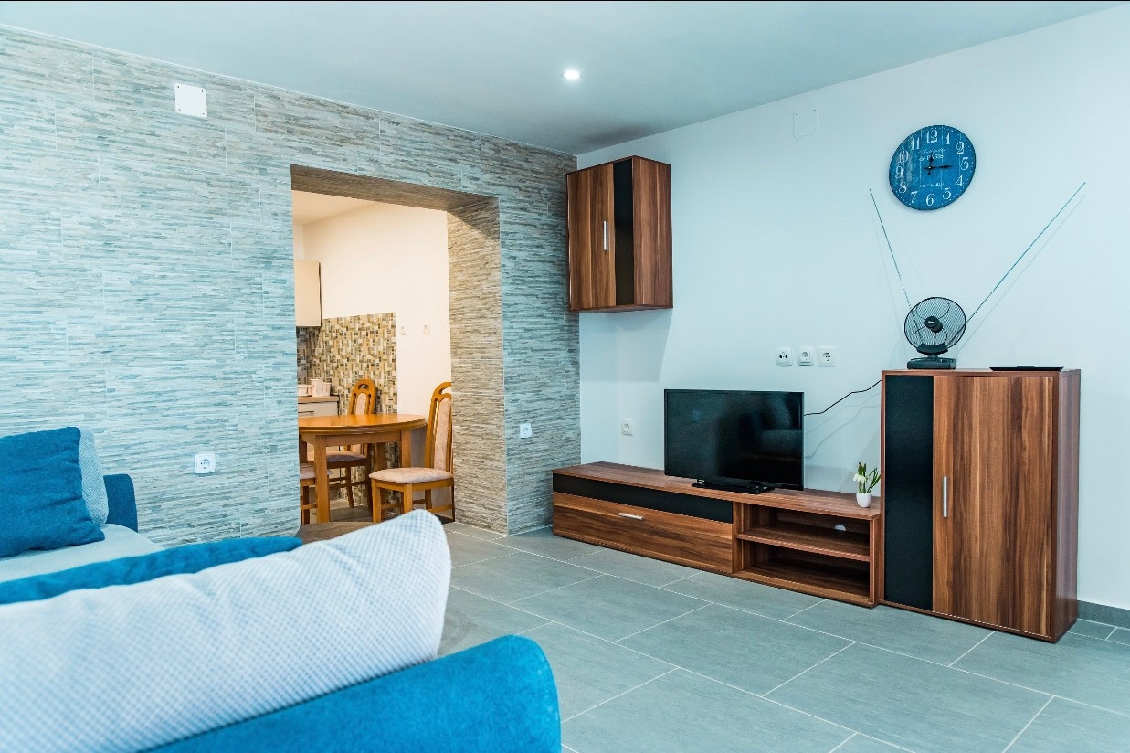 Apartment can accommodate 4 guests. Beds are situated in 1 sleeping rooms, but also in the living room, within 41m2. Guests can use a private terrace to enjoy the warm summer evenings. The apartment offers the sea view. For full enjoyment and relaxation there is a private barbecue for this accommodation guests only. Shared pool is on disposal during stay. INCLUDED IN THE PRICE: tourist tax, final cleaning, air-conditioning, pool, parking, internet, baby cot, iron, ironing board, hairdryer. The availability of additional services for your chosen dates of stay, as well as their prices (if none are listed) must be checked ahead of time. Any additional services not shown in the price calculation are payable directly to the property owner and only if used by the visitor.