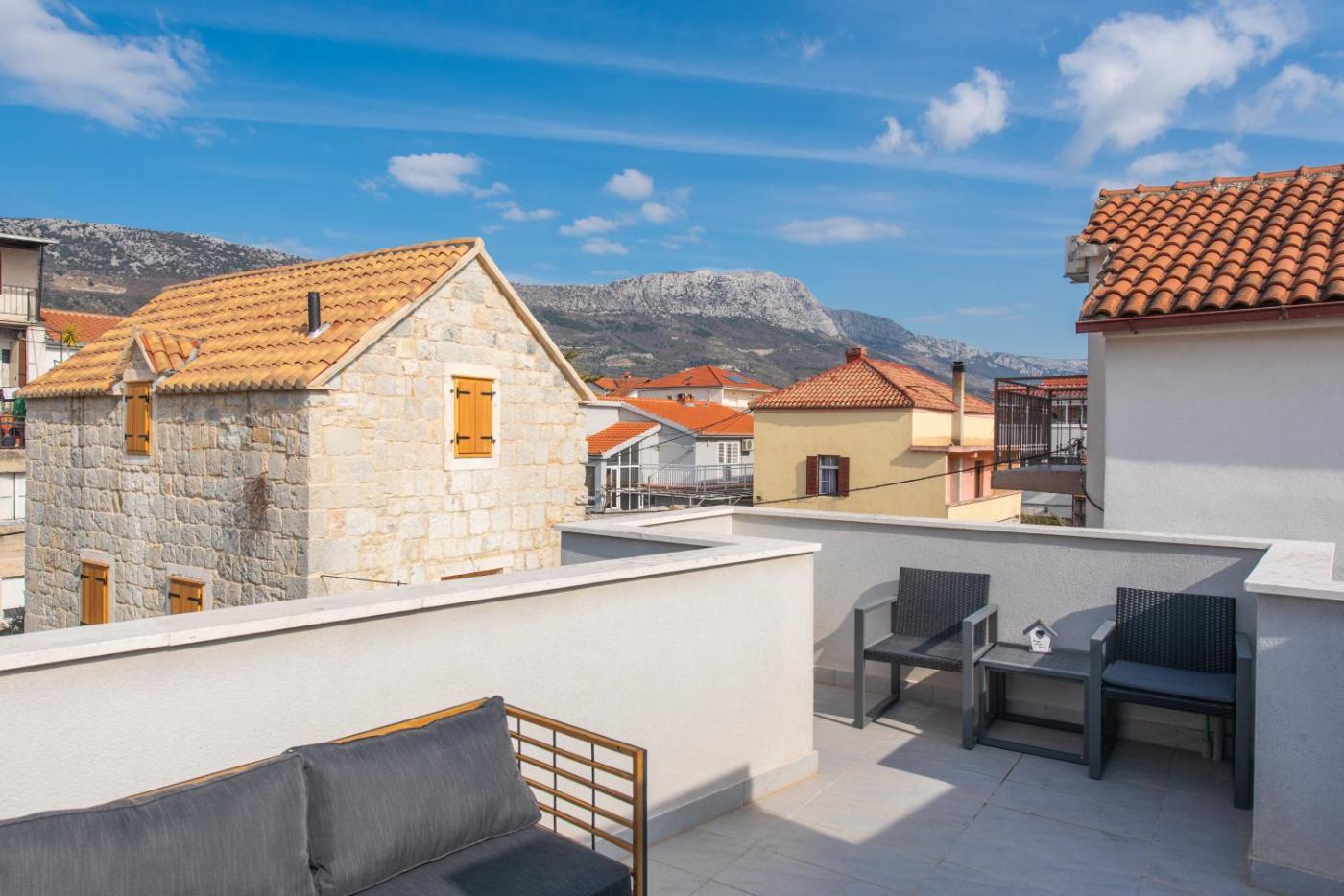 Located 300 metres from Ostrog Beach and 13 km from Salona Archeological Park, Apartmani Mara features free WiFi and units equipped with a kitchen, patio and seating area. The property features mountain and garden views, and is 16 km from Park Mladeži Stadium. The apartment has family rooms.