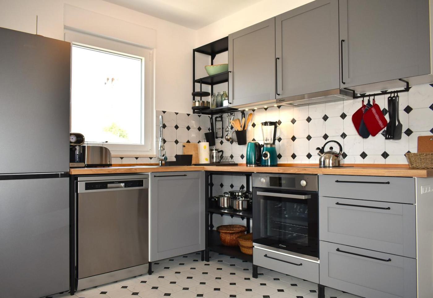 Two-Bedroom Apartment. This spacious apartment includes 1 living room, 2 separate bedrooms and 1 bathroom with a walk-in shower and free toiletries. In the fully equipped kitchen, guests will find a stovetop, a refrigerator, a dishwasher and kitchenware. The air-conditioned apartment offers a flat-screen TV with streaming services, a washing machine, a private entrance, soundproof walls as well as ancourtyard view. The unit has 3 beds.