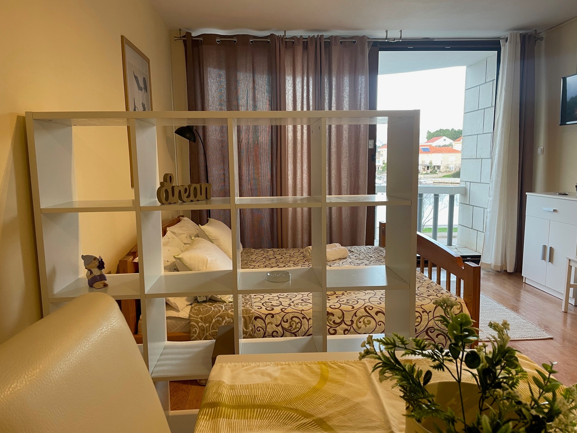 Studio flat can accommodate 2 guests. Beds are situated in 1 sleeping rooms, within 31m2. Guests can use a private terrace to enjoy the warm summer evenings. The studio offers the sea view. Food can be prepared using barbecue which is shared with other guests too. INCLUDED IN THE PRICE: tourist tax, final cleaning, air-conditioning, parking, internet, baby cot, hairdryer. OPTIONAL ADDITIONAL COSTS: boat mooring (€15.00 per night). The availability of additional services for your chosen dates of stay, as well as their prices (if none are listed) must be checked ahead of time. Any additional services not shown in the price calculation are payable directly to the property owner and only if used by the visitor. Discounts to the base price: free day 14=13 (for reservations of 14 or more days you get one free day for the stay until 31122026).