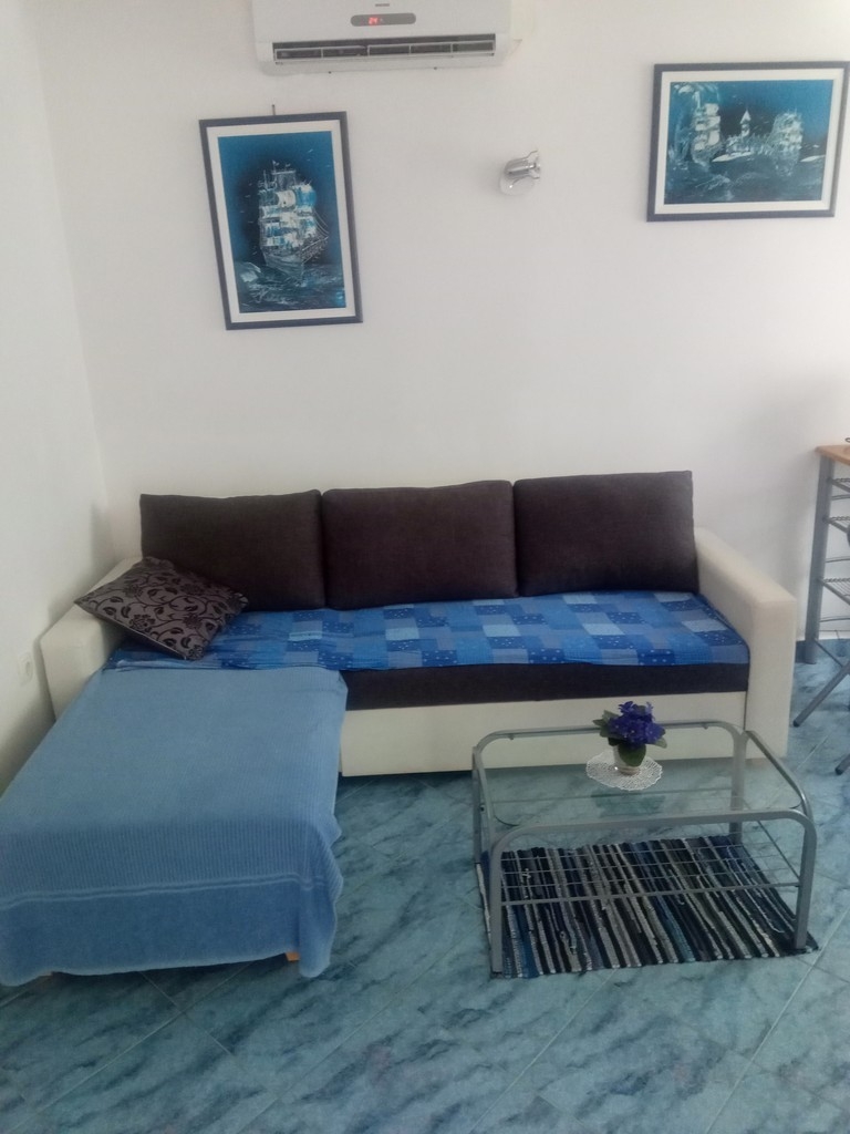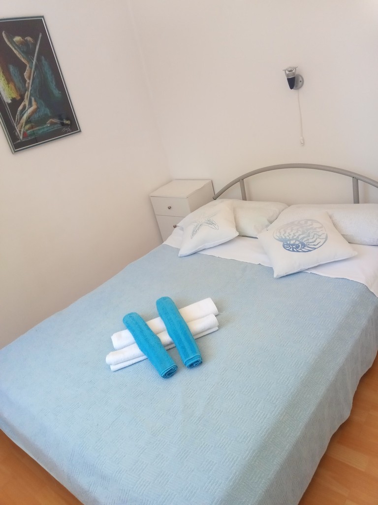 Apartment can accommodate 6 guests. Beds are situated in 2 sleeping rooms, but also in the living room, within 39m2. Guests can use a private terrace to enjoy the warm summer evenings. Food can be prepared using barbecue which is shared with other guests too. This accommodation unit welcomes pets at an additional charge. INCLUDED IN THE PRICE: final cleaning, parking, internet, baby cot, iron, hairdryer, sunshade. OBLIGATORY ADDITIONAL COSTS: tourist tax (adults €0.93 - €1.60 nightperson, discount for children aged 12 - 17). OPTIONAL ADDITIONAL COSTS: air-conditioning (€5.00 per night), pets (€8.00 per night). The availability of additional services for your chosen dates of stay, as well as their prices (if none are listed) must be checked ahead of time. Any additional services not shown in the price calculation are payable directly to the property owner and only if used by the visitor.