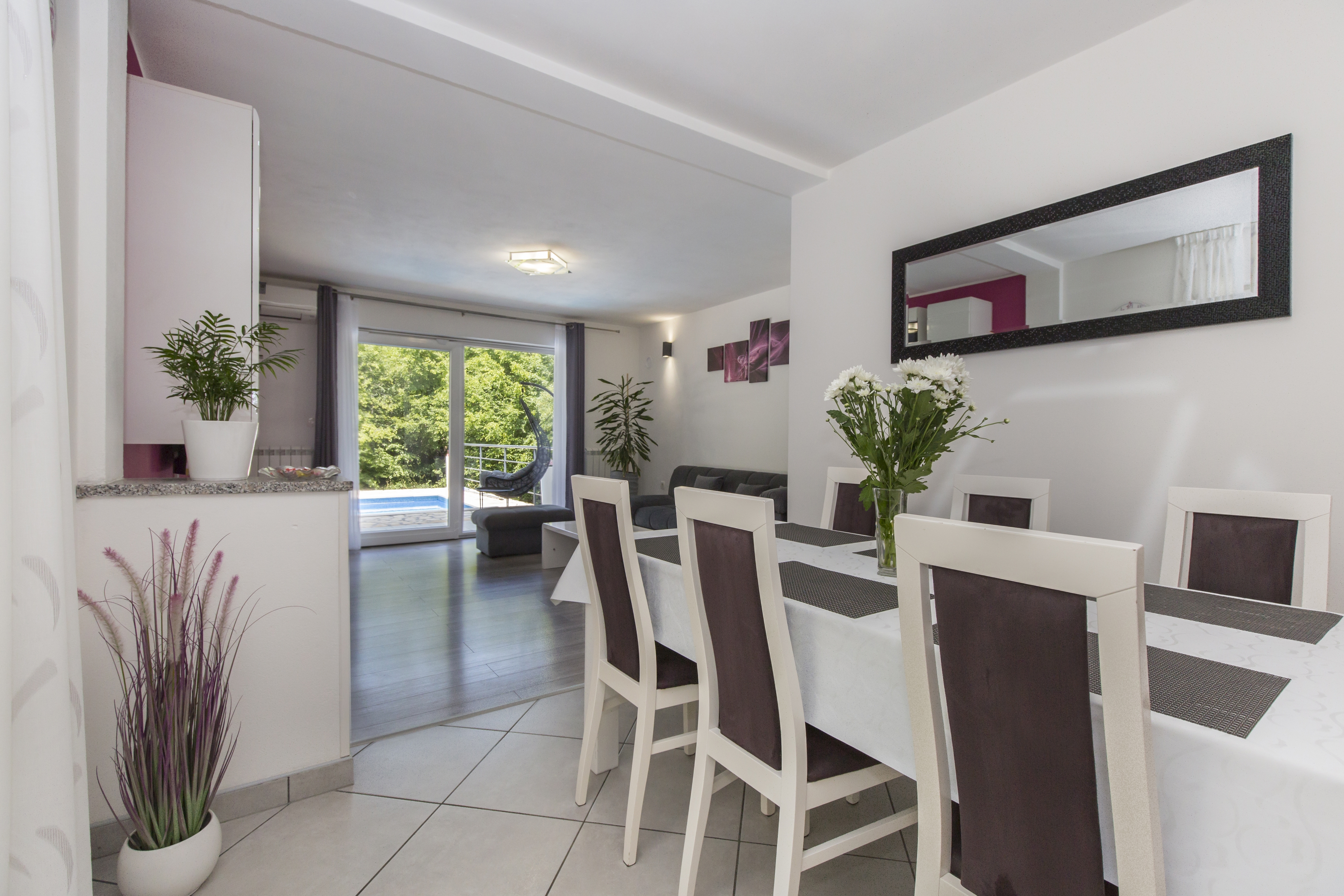House 24509 in the town of Kapelica, Labin - Istria is located 5.5 km from the sea. The nearest beach to this accommodation is a pebble beach. The house is categorized as "Facilities with a swimming pool". You will be the houses only guests during your holiday, as there are no other rooms or apartments. The hosts will not be in the house for the duration of your holiday. The house owner is under no obligation to accept additional persons and pets that were not stated in the reservation request and it is necessary to report them in advance.AMENITIES Infield (Well-equipped), Courtyard (1500m2, Area suitable for children, Sitting area), Parking lot (Number of parking spaces: 5, Distance from the house: In the courtyard), Pool: private, Dimensions: 6m x 4m x 1.5m, Type of water: Freshwater, WiFi Internet, Hairdryer, Iron, Ironing board, Baby cot LOCATION AND ACCESS Facility is situated near a local road Main road between the property and the beach Car access possible: Yes The facility is situated in relatively quiet surroundings The property is surrounded by greenery DISTANCES Sea: 5.5 km Beach: 5.5 km Center: 3.5 km Shop: 450 m Urgent medical care: 3 km Pharmacy: 3 km Exchange office: 2 km ATMBank machine: 3 km Tourist info: 2.5 km Gas station: 1.8 km Farmers market: 2.5 km