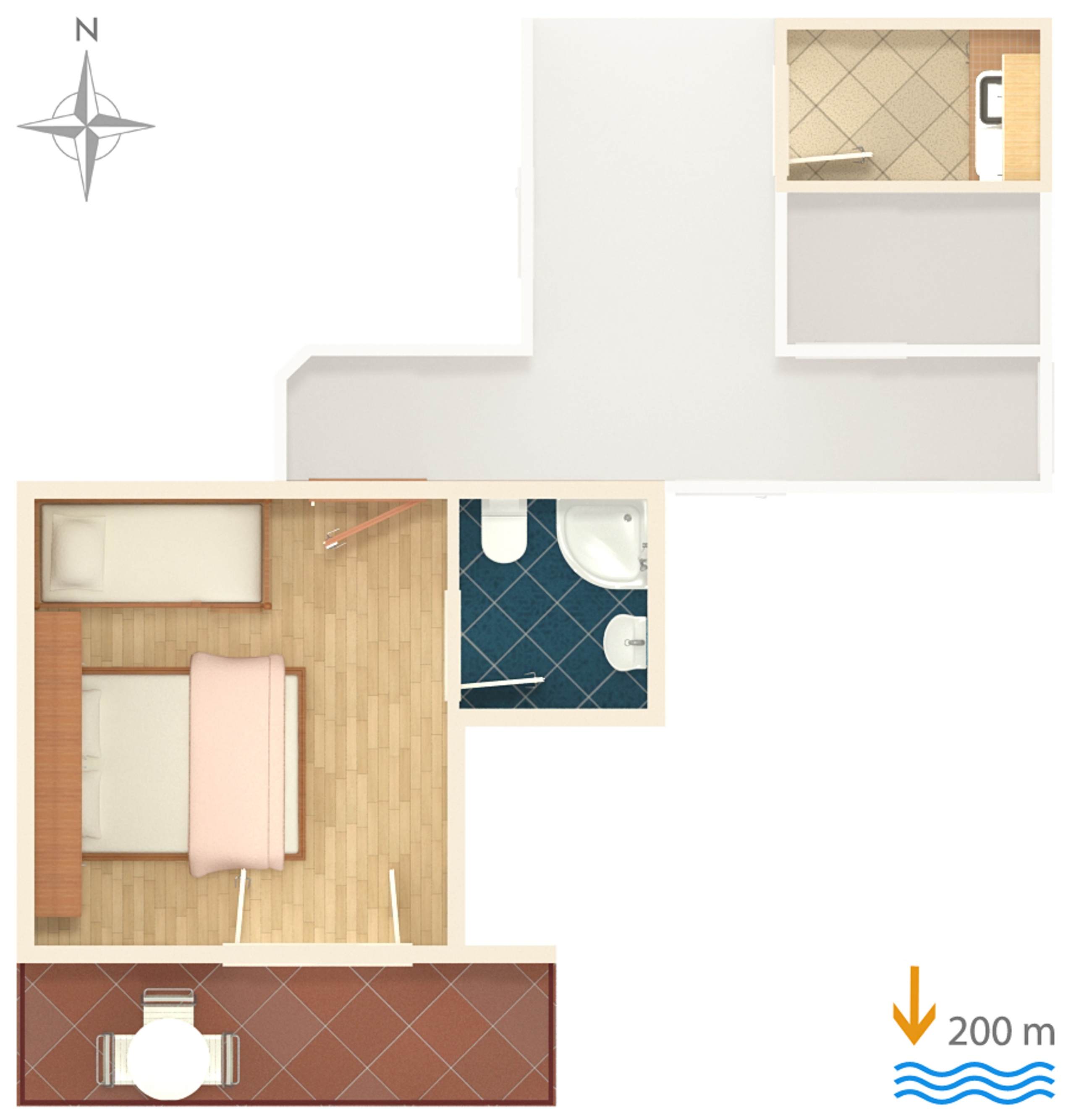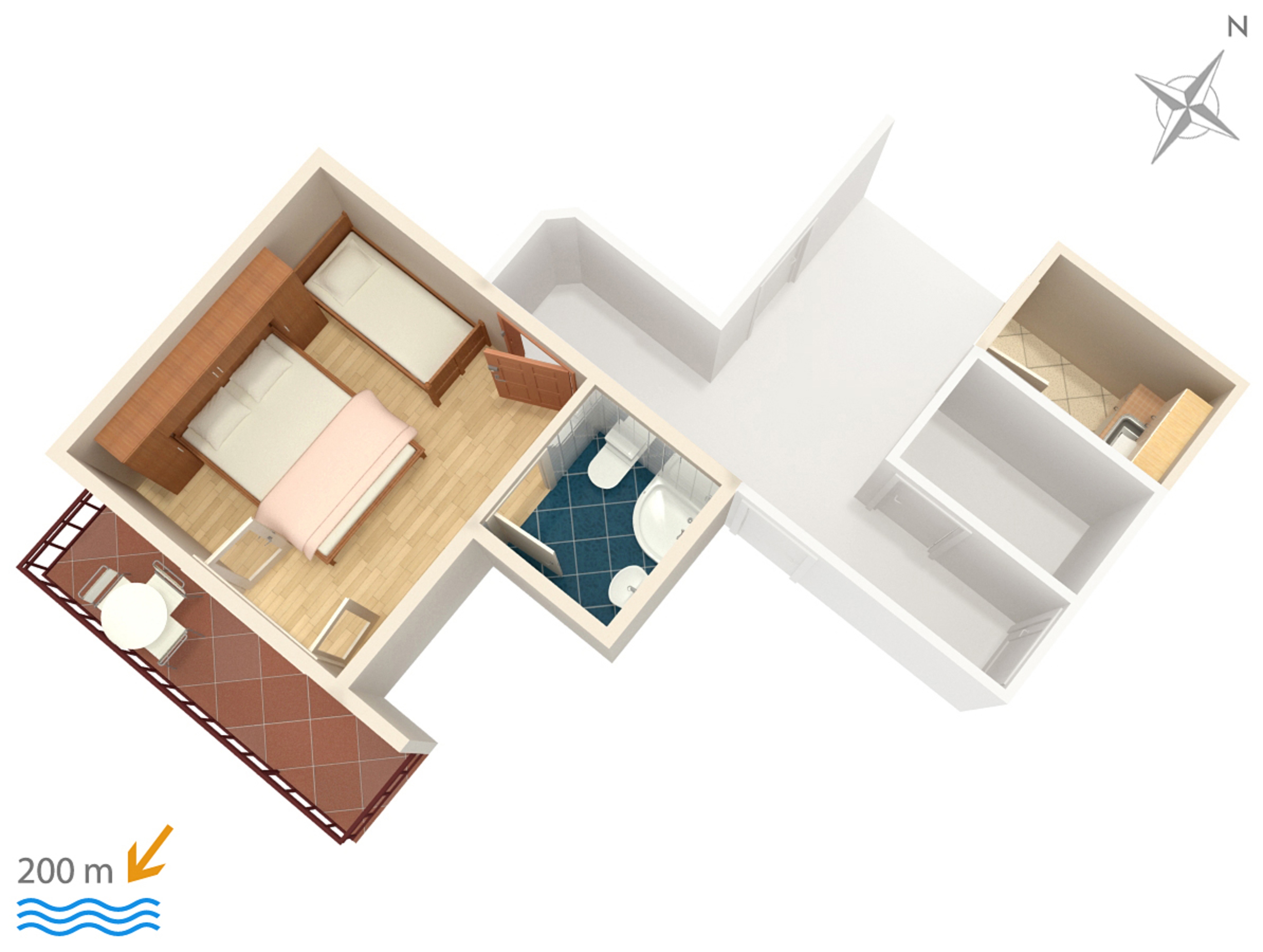 Studio flat can accommodate 3 guests. Beds are situated in 1 sleeping rooms, within 20m2. Guests can use a private balcony to enjoy the warm summer evenings. The studio offers the sea view. Food can be prepared using barbecue which is shared with other guests too. Some of the rooms of the accommodation unit are not connected with the rest of the unit. INCLUDED IN THE PRICE: tourist tax, final cleaning, air-conditioning, parking, internet, iron, ironing board, hairdryer. OBLIGATORY ADDITIONAL COSTS: short stay fee (surcharge depending on a number of booked nights: 30% - 1, 20% - 2, 10% - 3). The availability of additional services for your chosen dates of stay, as well as their prices (if none are listed) must be checked ahead of time. Any additional services not shown in the price calculation are payable directly to the property owner and only if used by the visitor.