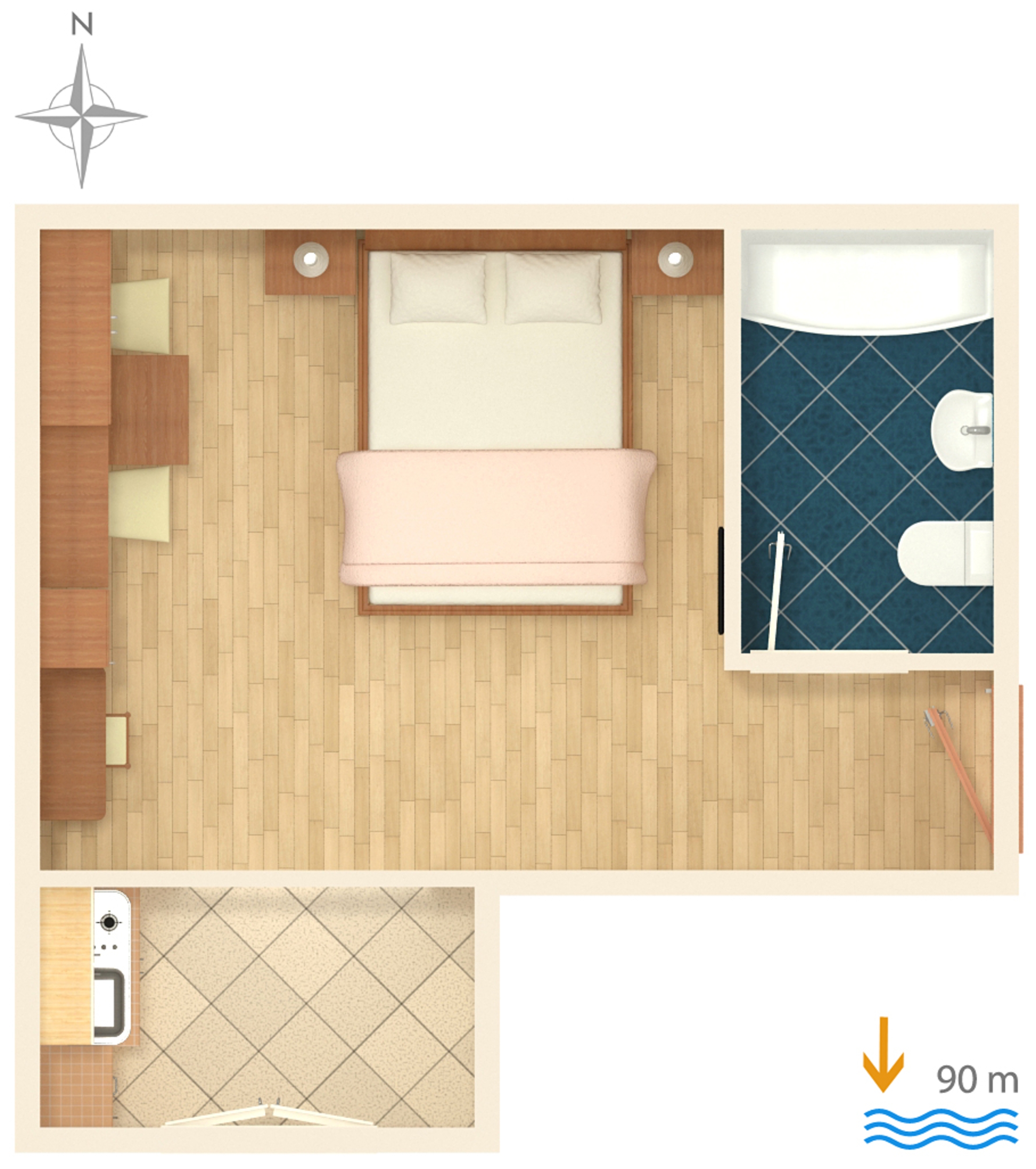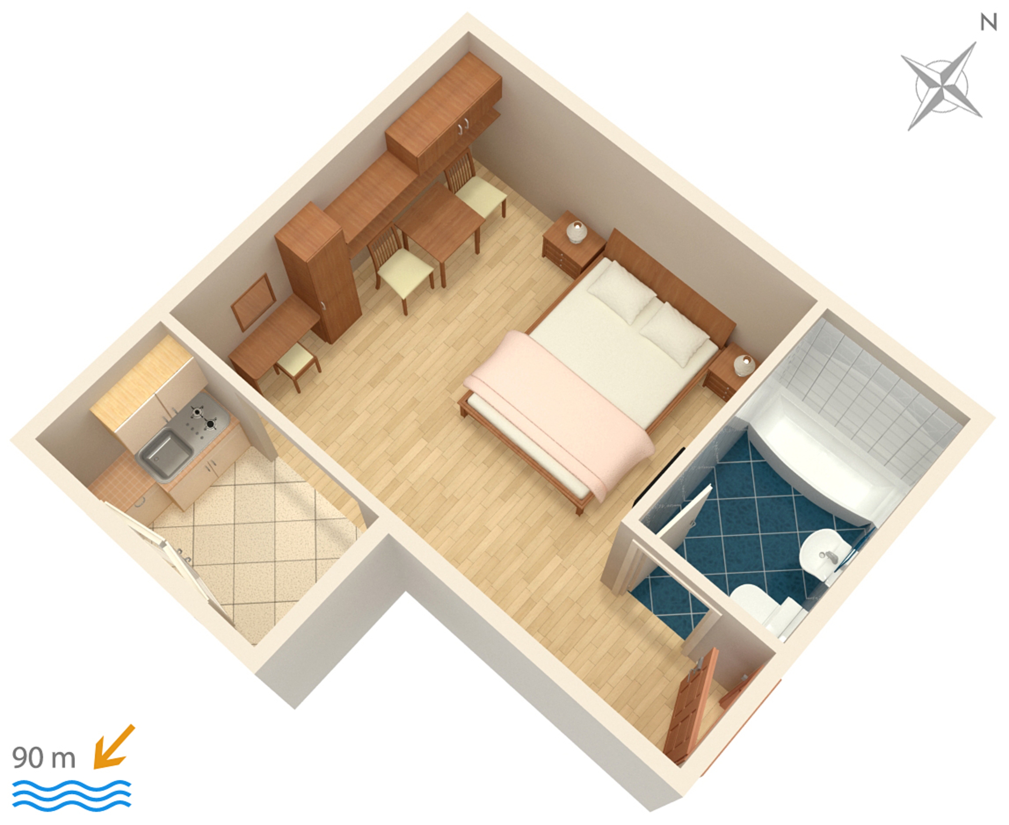 Studio flat can accommodate 2 guests. Beds are situated in 1 sleeping rooms, within 21m2. The studio offers the sea view. Food can be prepared using barbecue which is shared with other guests too. There is no balcony or terrace in the reserved accommodation unit. INCLUDED IN THE PRICE: tourist tax, final cleaning, air-conditioning, parking, internet, baby cot, iron, ironing board, portable barbecue. The availability of additional services for your chosen dates of stay, as well as their prices (if none are listed) must be checked ahead of time. Any additional services not shown in the price calculation are payable directly to the property owner and only if used by the visitor. Discounts to the base price: free day 14=13 (for reservations of 14 or more days you get one free day for the stay until 31122026).