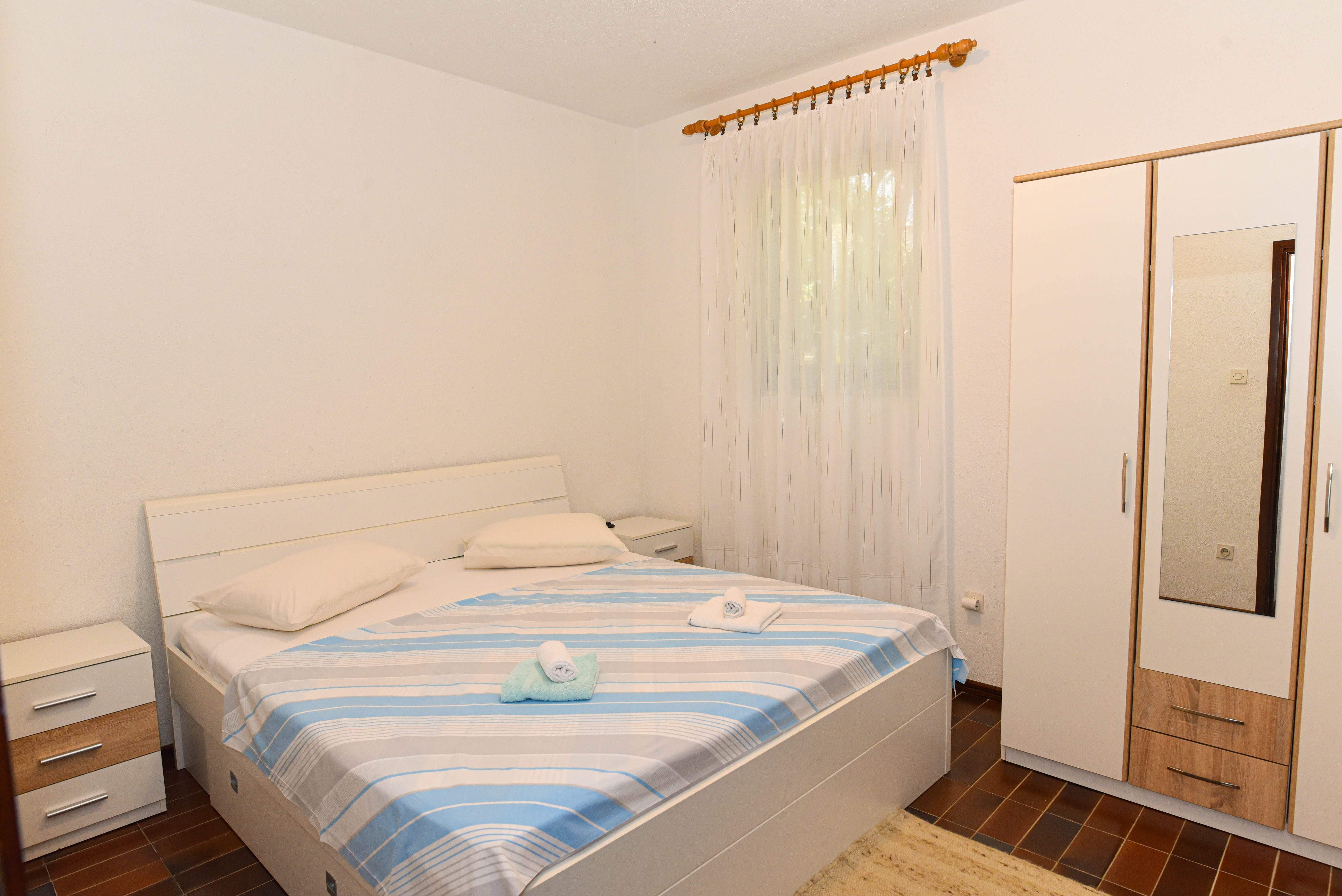 Apartment can accommodate 5 guests. Beds are situated in 2 sleeping rooms, within 43m2. Guests can use a private terrace to enjoy the warm summer evenings. INCLUDED IN THE PRICE: tourist tax, final cleaning, air-conditioning, parking, internet, iron, ironing board, hairdryer. The availability of additional services for your chosen dates of stay, as well as their prices (if none are listed) must be checked ahead of time. Any additional services not shown in the price calculation are payable directly to the property owner and only if used by the visitor.