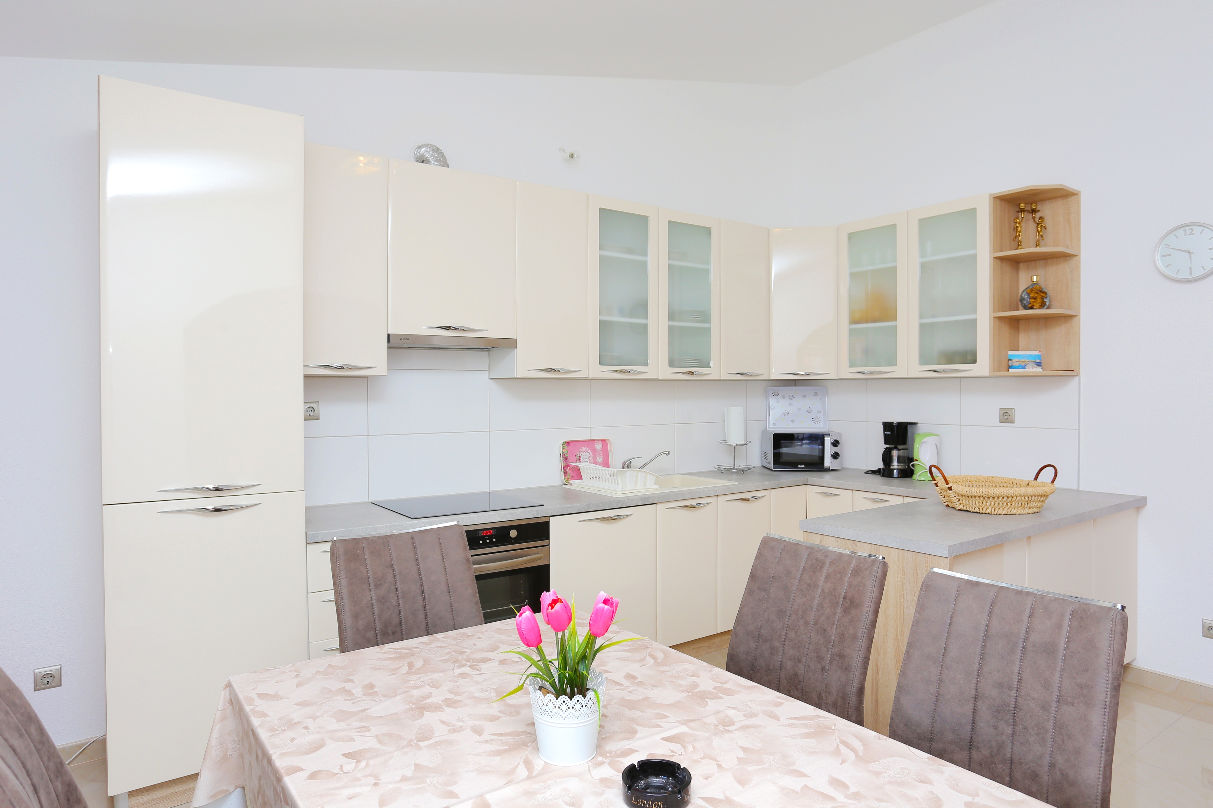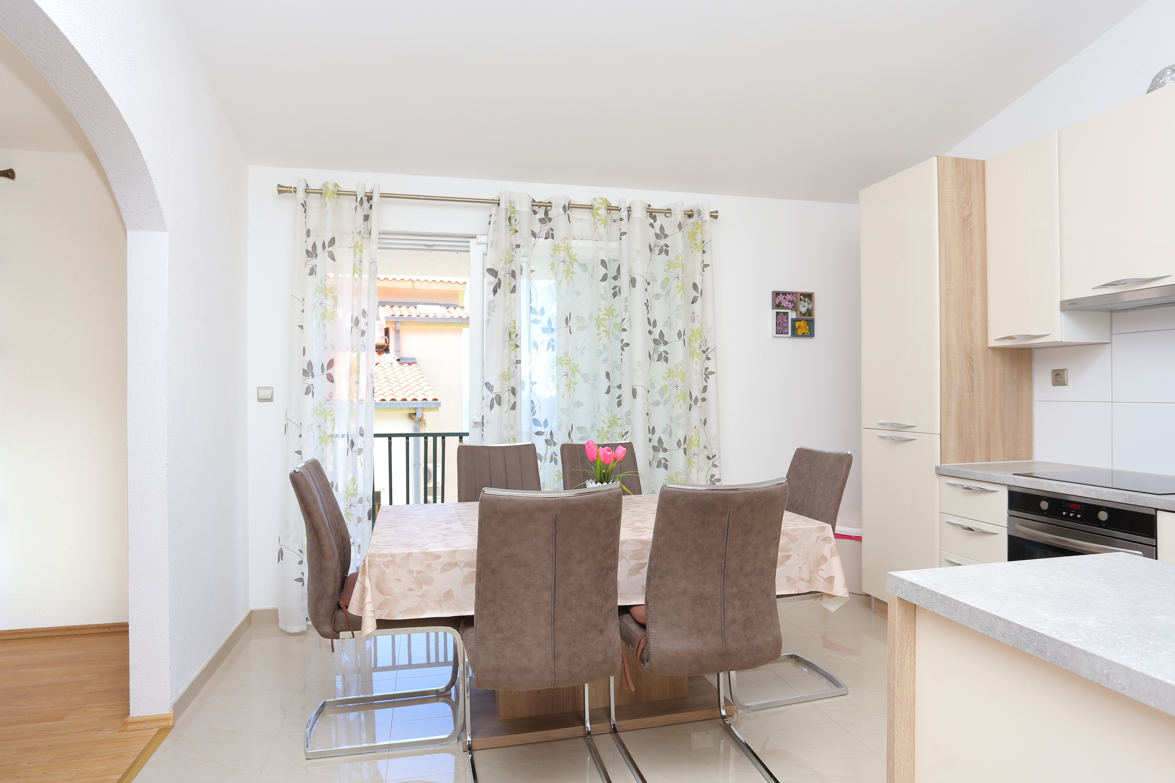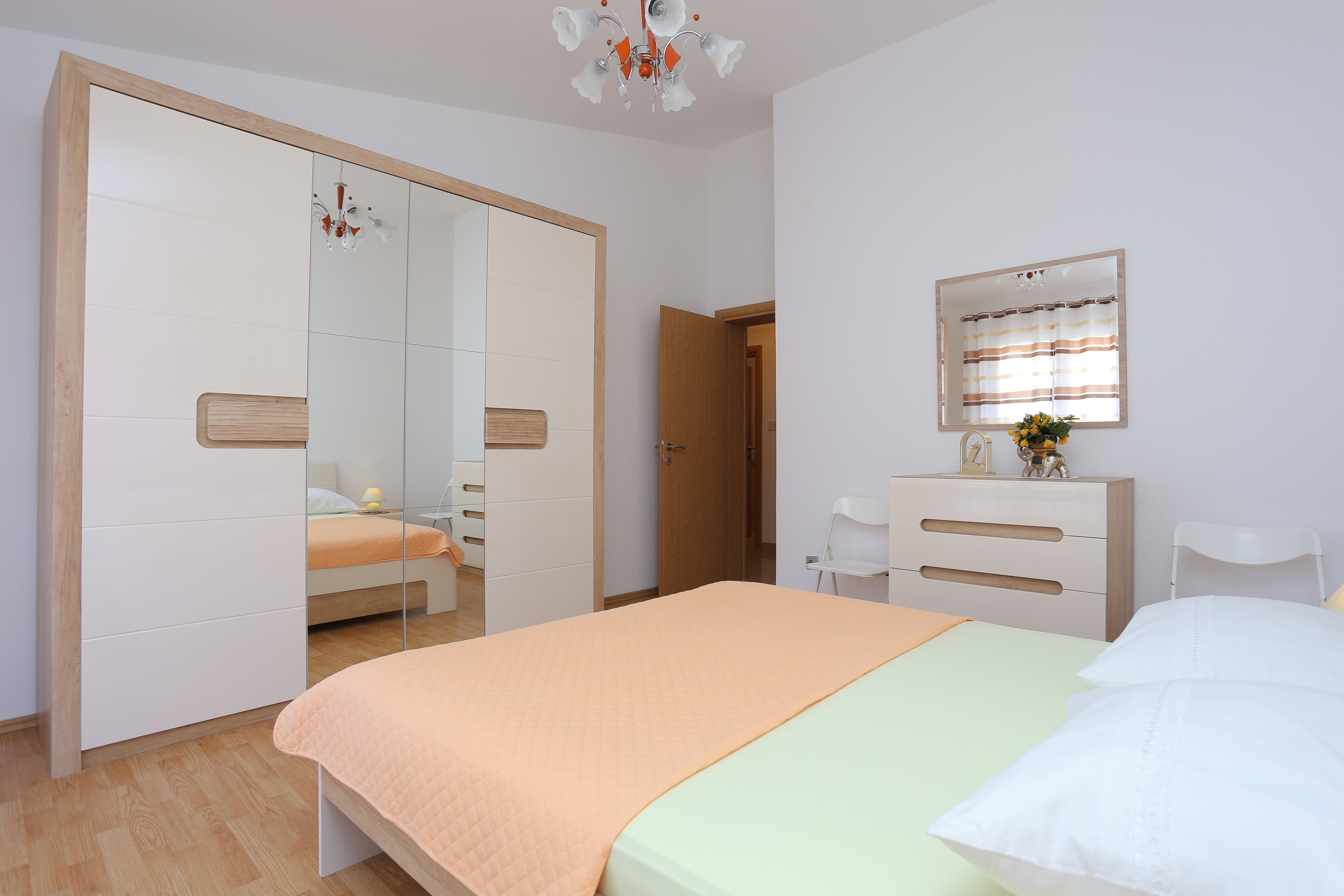 Apartment can accommodate 8 guests. Beds are situated in 3 sleeping rooms, but also in the living room, within 104m2. Guests can use a private balcony to enjoy the warm summer evenings. The apartment offers the sea view. Food can be prepared using barbecue which is shared with other guests too. INCLUDED IN THE PRICE: tourist tax, final cleaning, parking, internet, iron, ironing board, hairdryer. OBLIGATORY ADDITIONAL COSTS: short stay fee (surcharge depending on a number of booked nights: 30% - 1, 20% - 2, 10% - 3). OPTIONAL ADDITIONAL COSTS: air-conditioning (€1.00 kwh), laundry (€5.00 washing). The availability of additional services for your chosen dates of stay, as well as their prices (if none are listed) must be checked ahead of time. Any additional services not shown in the price calculation are payable directly to the property owner and only if used by the visitor. Discounts to the base price: free day 14=13 (for reservations of 14 or more days you get one free day for the stay until 31122026).