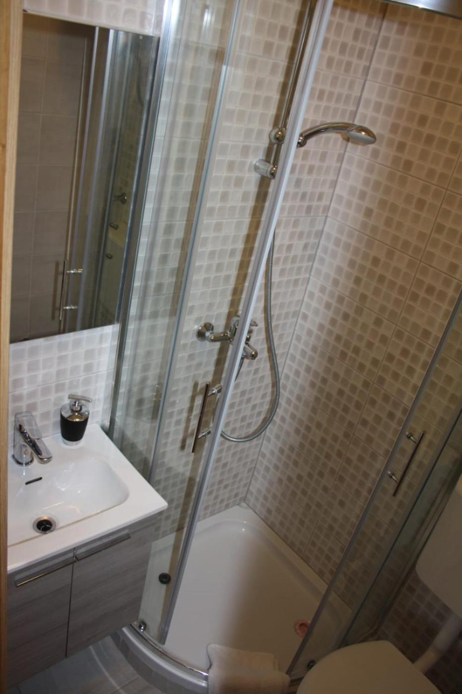 Three-Bedroom Apartment. This spacious apartment includes 1 living room, 3 separate bedrooms and 3 bathrooms with a shower and a hairdryer. The apartment offers air conditioning, a washing machine, an electric kettle, heating and a flat-screen TV. The unit has 7 beds.
