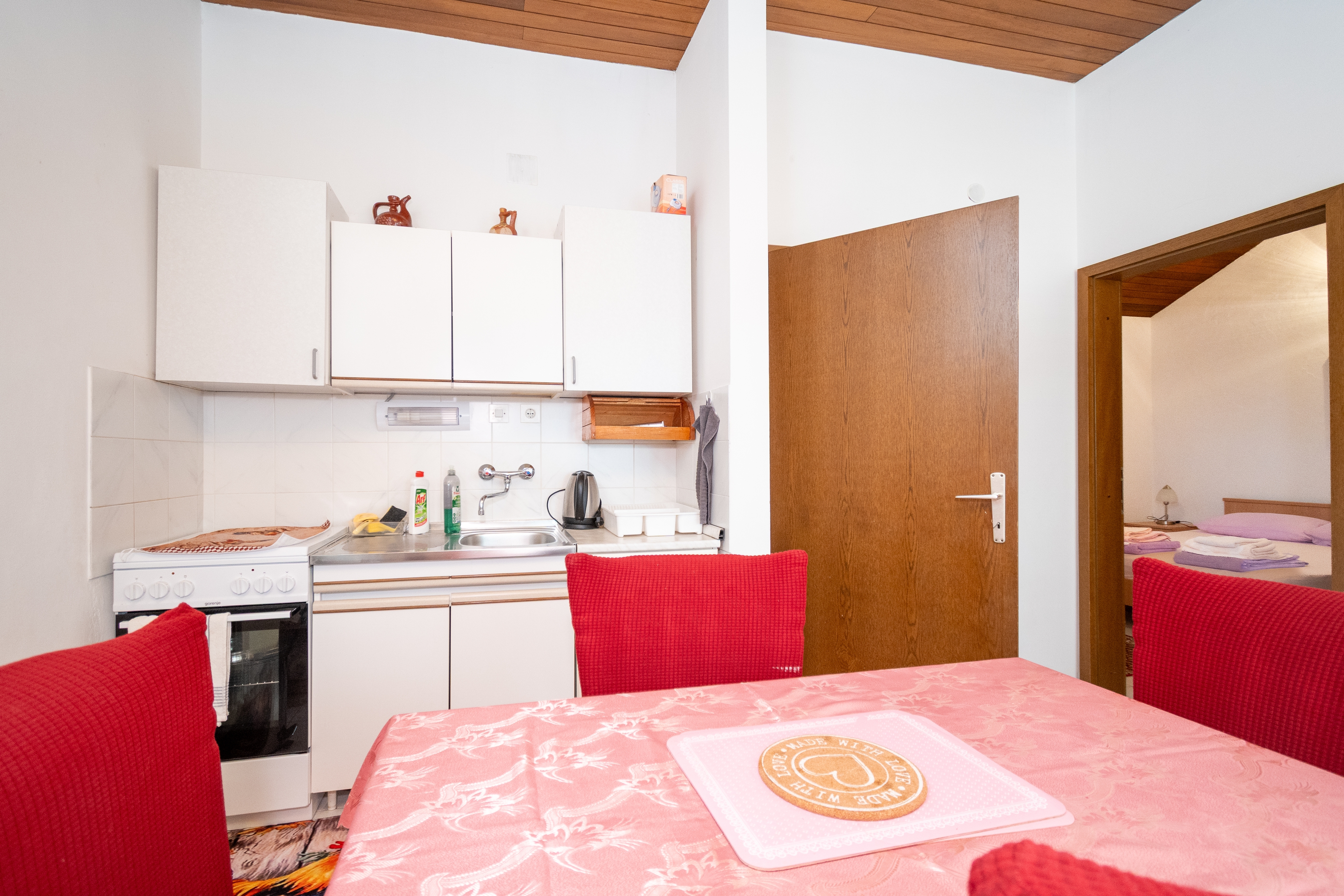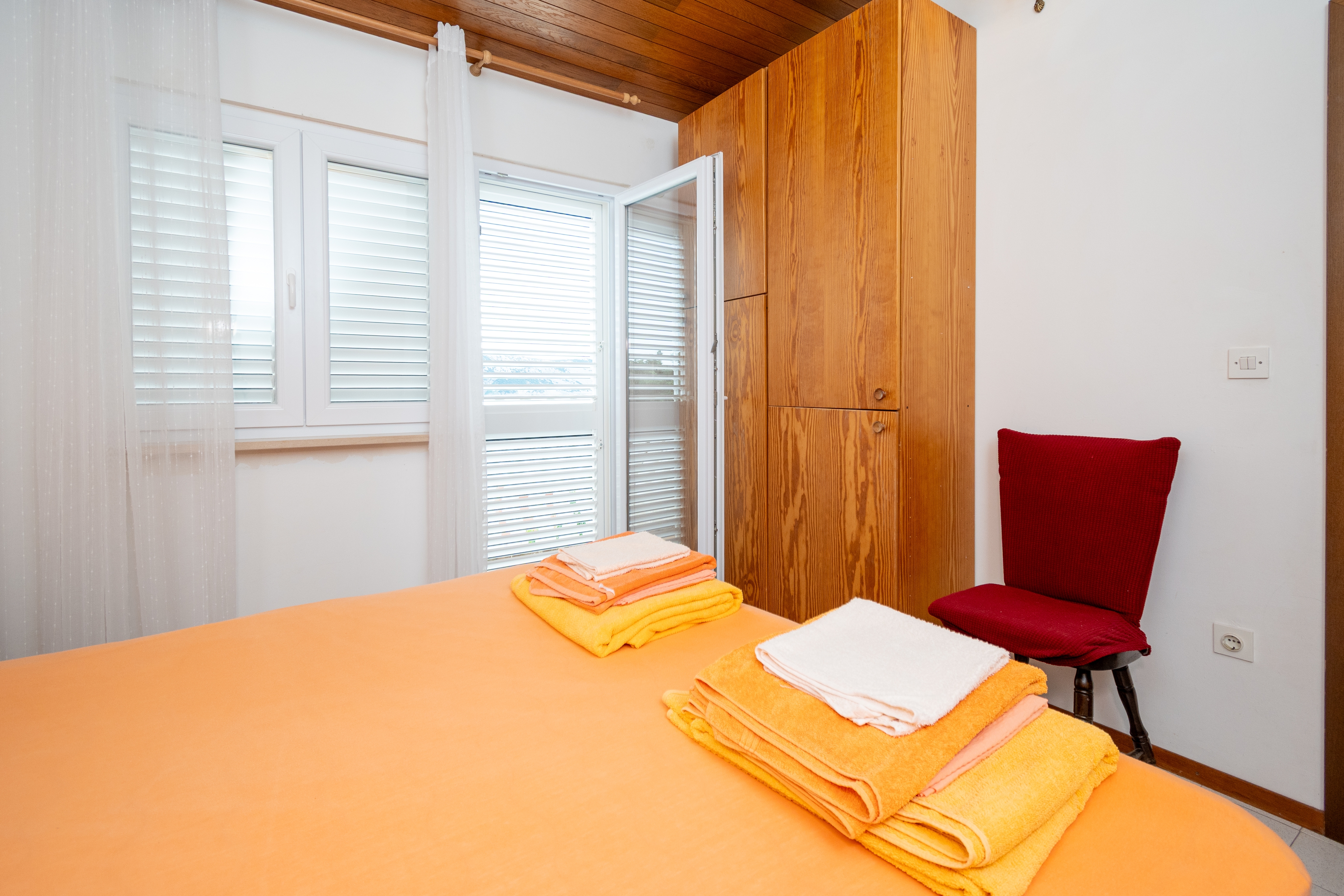 Apartment can accommodate 4 guests. Beds are situated in 2 sleeping rooms, within 46m2. Guests can use a private terrace to enjoy the warm summer evenings. The apartment offers the sea view. Food can be prepared using barbecue which is shared with other guests too. INCLUDED IN THE PRICE: tourist tax, final cleaning, air-conditioning, parking, internet, boat mooring, iron, hairdryer, sunshade, sunchairs. OBLIGATORY ADDITIONAL COSTS: short stay fee (surcharge depending on a number of booked nights: 30% - 1, 20% - 2, 10% - 3). The availability of additional services for your chosen dates of stay, as well as their prices (if none are listed) must be checked ahead of time. Any additional services not shown in the price calculation are payable directly to the property owner and only if used by the visitor.