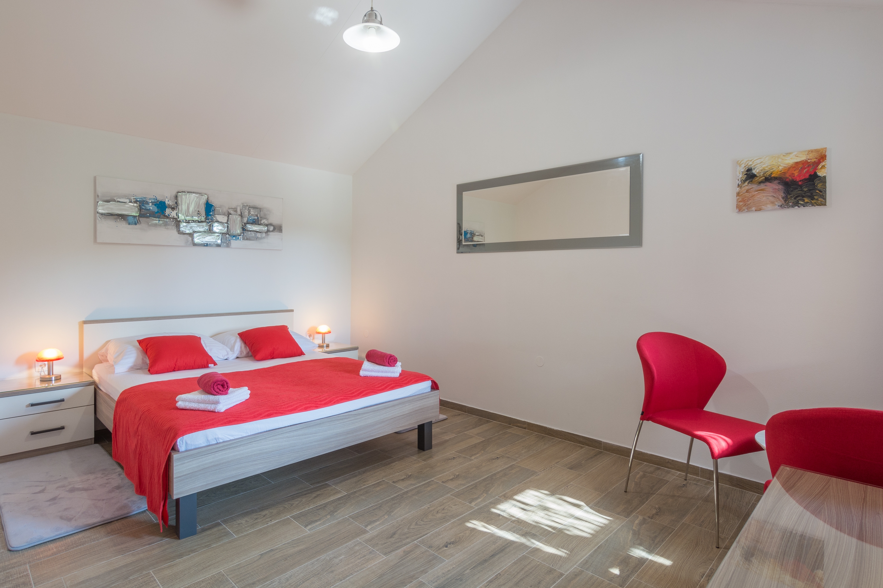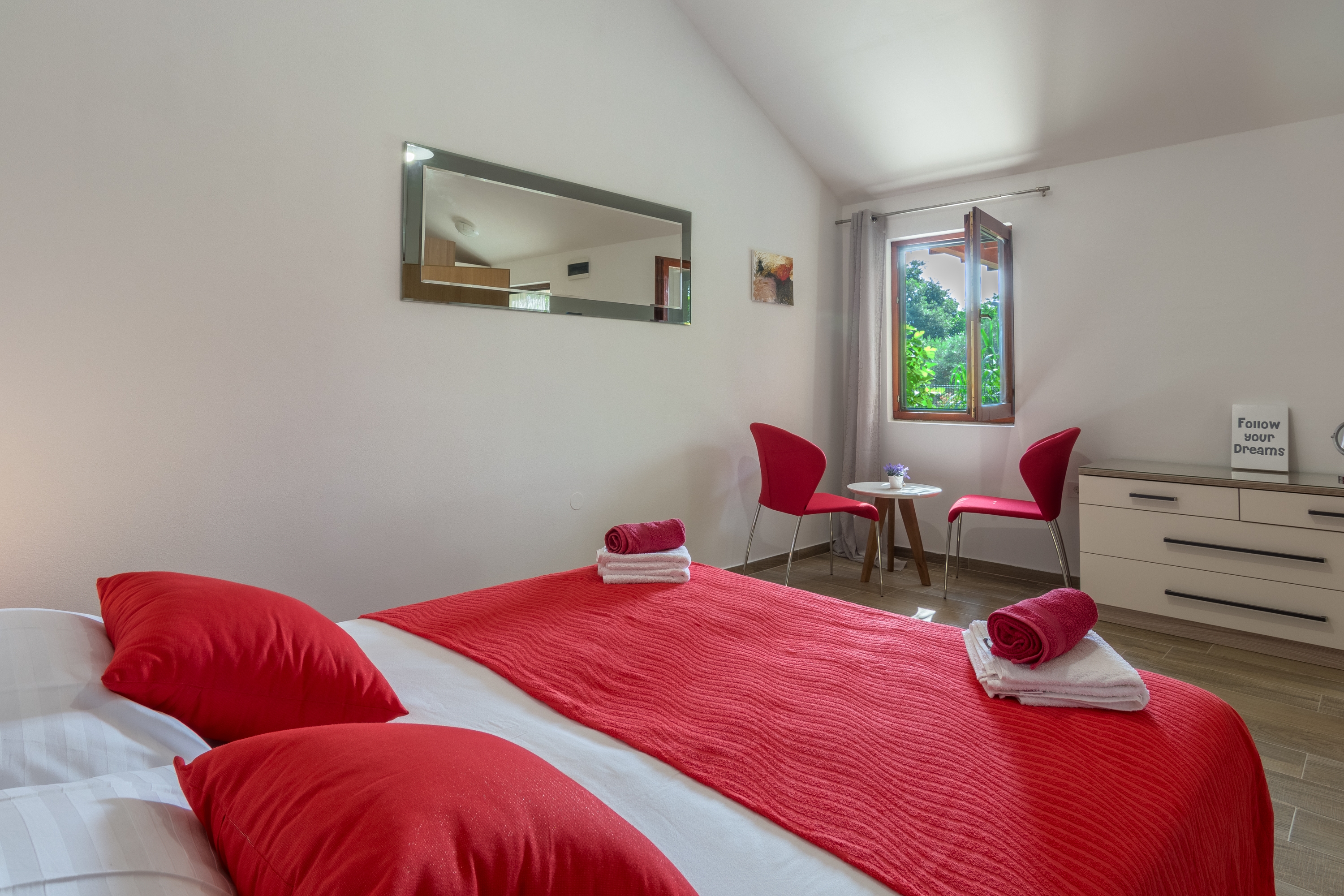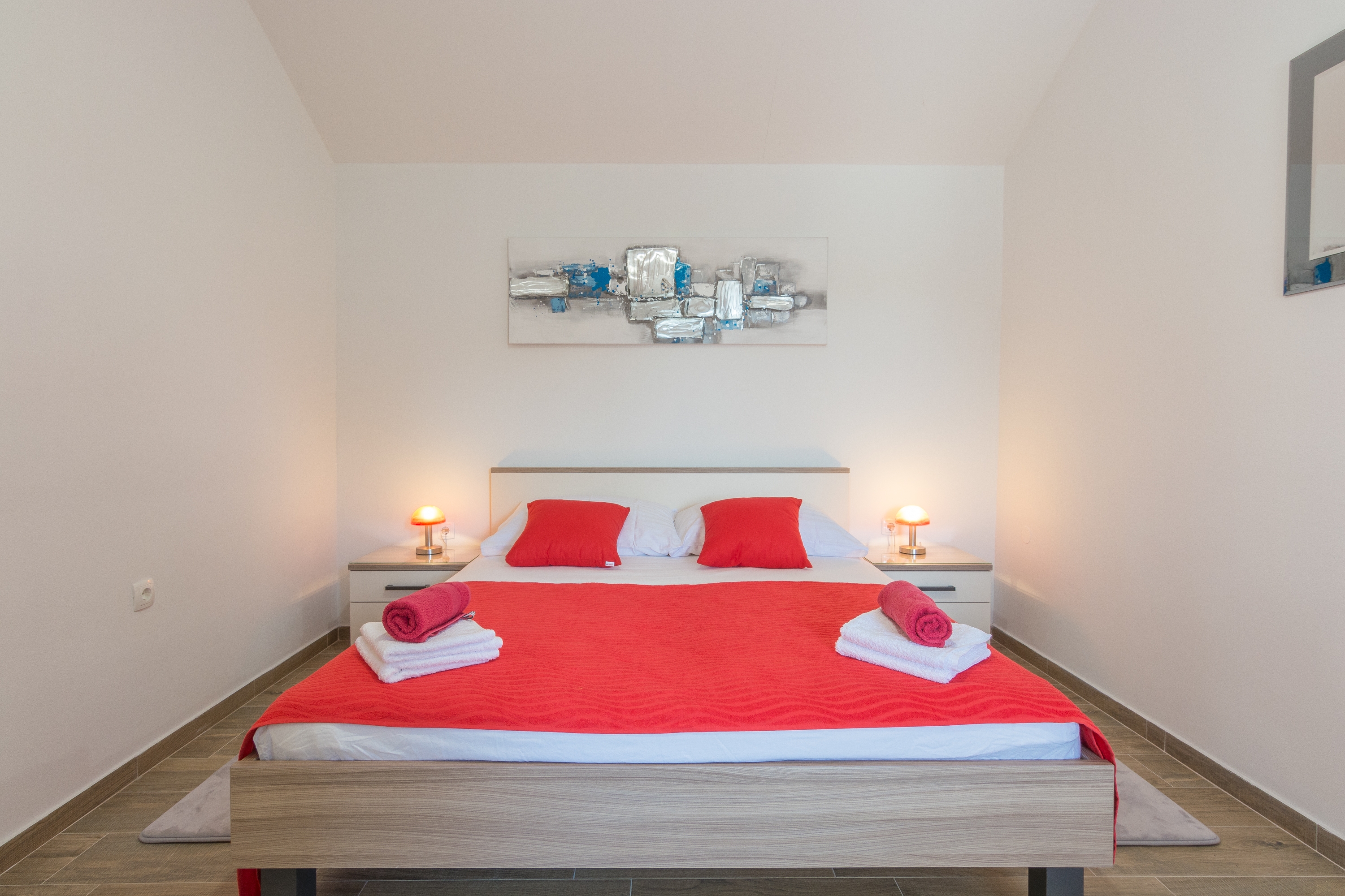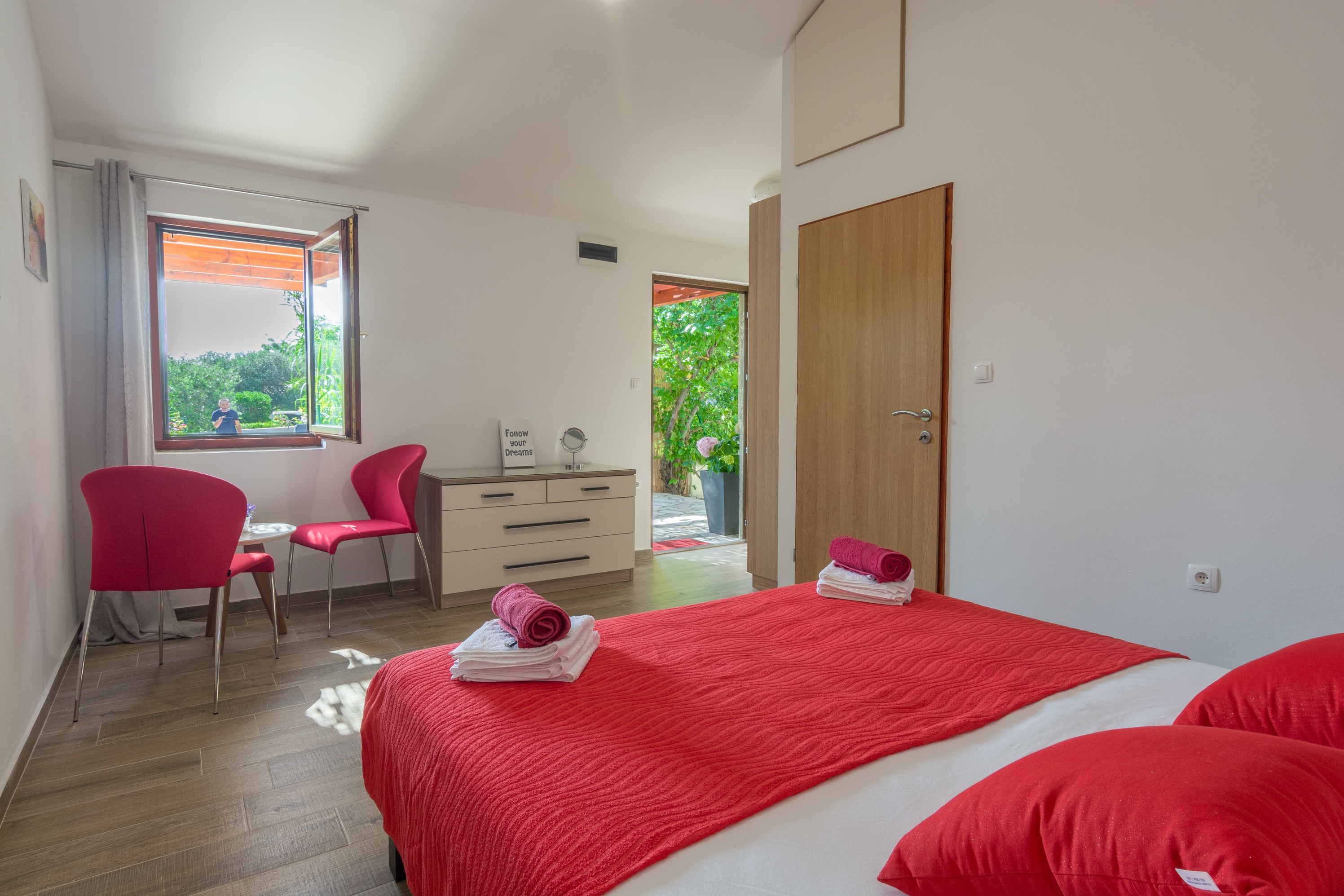House can accommodate 4 guests. Beds are situated in 1 sleeping rooms, but also in the living room, within 47m2. Guests can use a private terrace to enjoy the warm summer evenings. For full enjoyment and relaxation there is a private barbecue for this accommodation guests only. INCLUDED IN THE PRICE: tourist tax, final cleaning, air-conditioning, parking, internet, baby cot, iron, ironing board, hairdryer. The availability of additional services for your chosen dates of stay, as well as their prices (if none are listed) must be checked ahead of time. Any additional services not shown in the price calculation are payable directly to the property owner and only if used by the visitor.