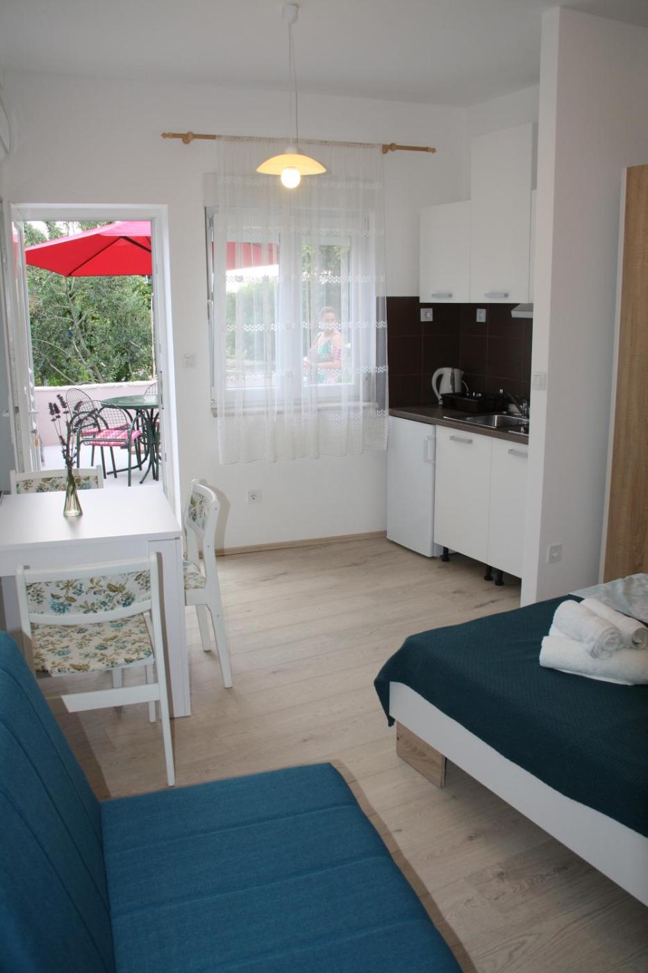 Studio Apartment. Boasting a private entrance, this air-conditioned apartment includes 1 bedroom and 1 bathroom with a walk-in shower. Guests will find a stovetop, a refrigerator, kitchenware and an electric kettle in the kitchen. The apartment also features a barbecue. Featuring a terrace with sea views, this apartment also offers soundproof walls and a flat-screen TV. The unit has 2 beds.