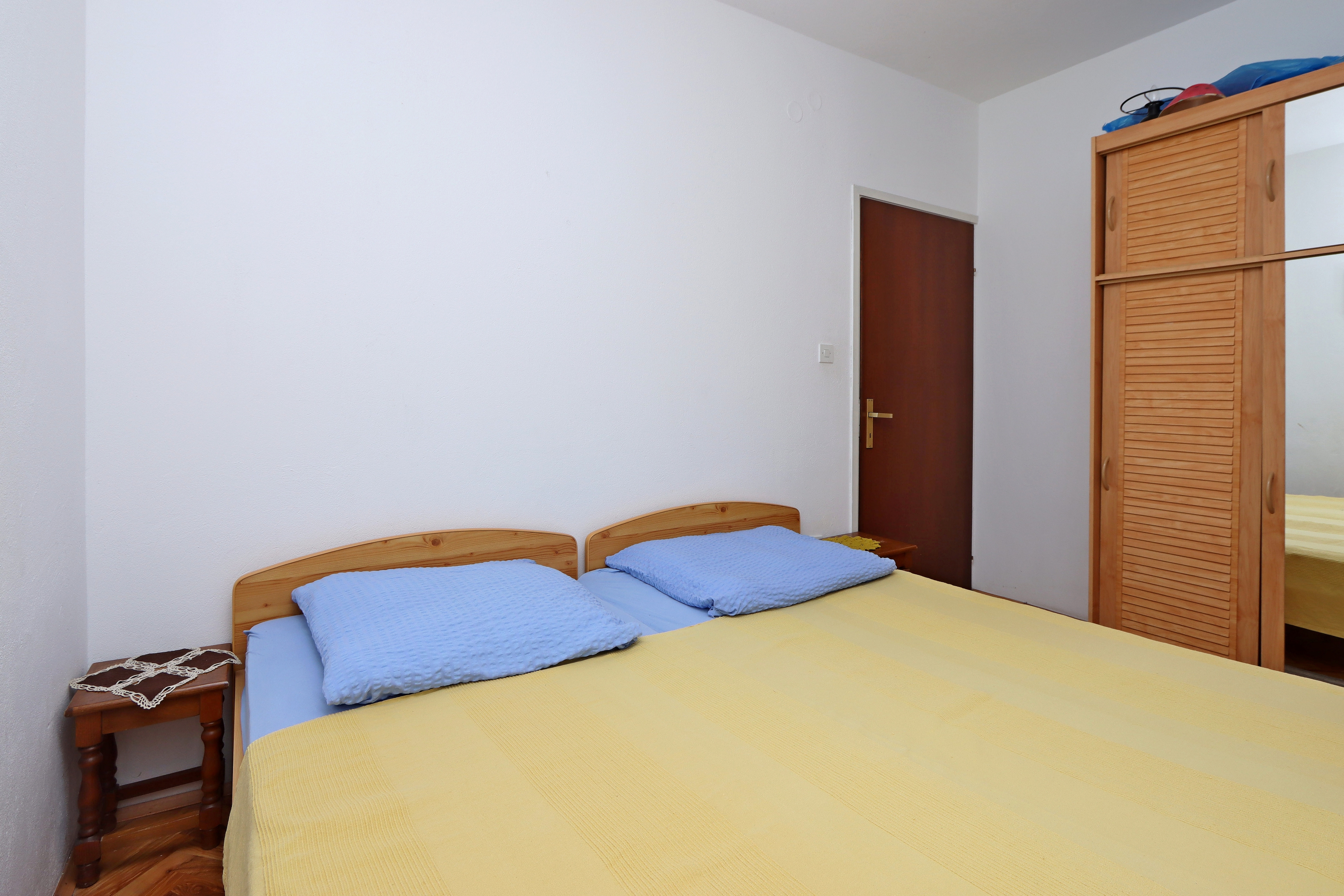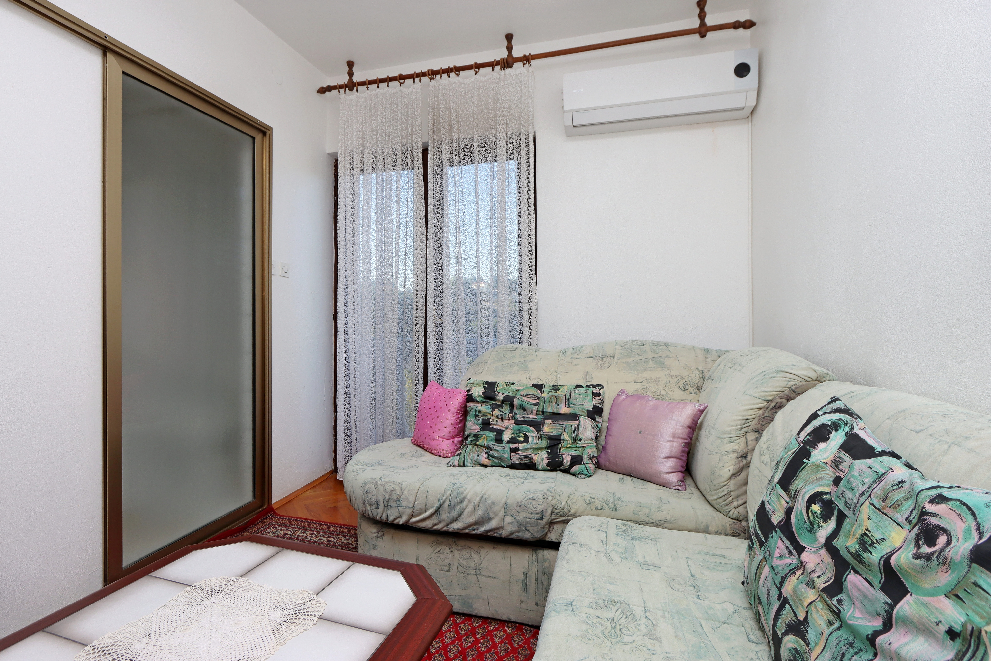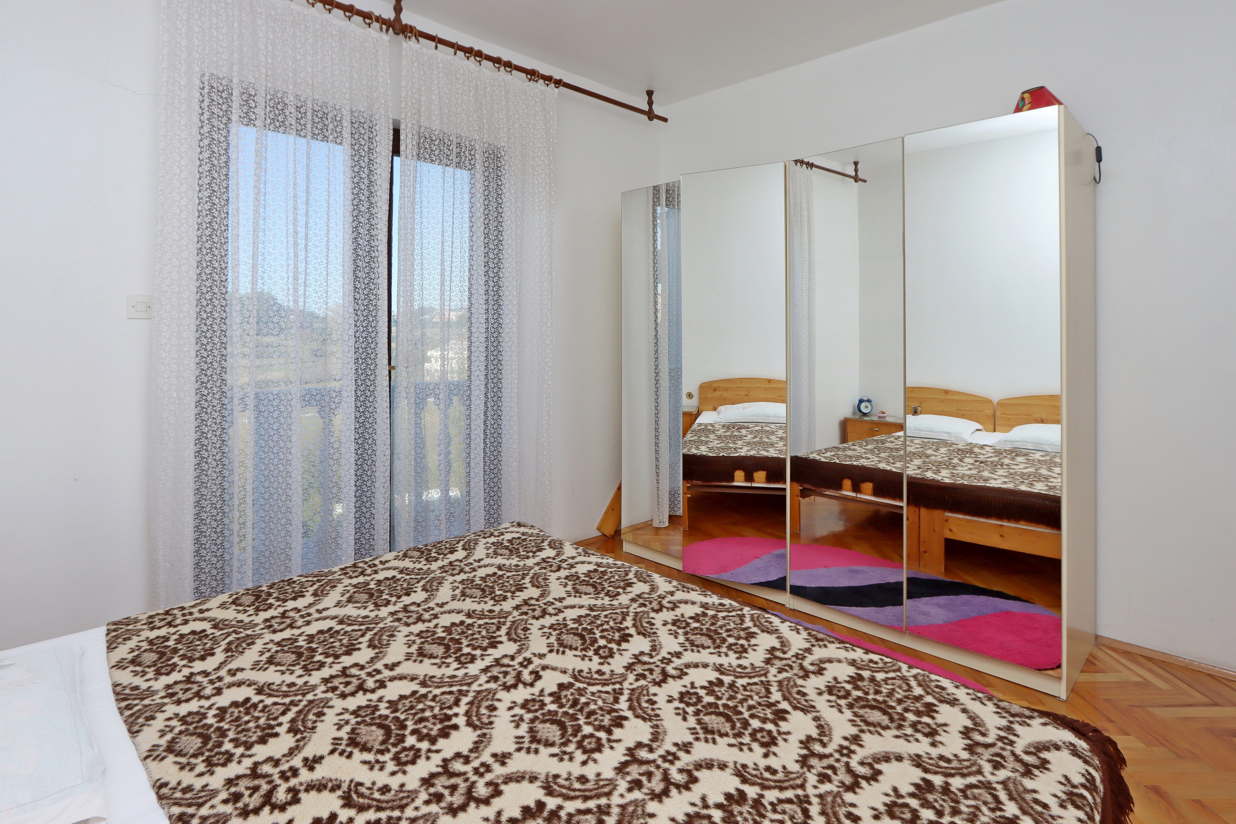 Apartment can accommodate 5 guests. Beds are situated in 2 sleeping rooms, but also in the living room, within 60m2. Guests can use a private balcony to enjoy the warm summer evenings. Food can be prepared using barbecue which is shared with other guests too. This accommodation unit welcomes pets at an additional charge. INCLUDED IN THE PRICE: tourist tax, final cleaning, parking, internet, iron, ironing board, hairdryer, portable barbecue. OBLIGATORY ADDITIONAL COSTS: short stay fee (surcharge depending on a number of booked nights: 30% - 1, 20% - 2, 10% - 3). OPTIONAL ADDITIONAL COSTS: air-conditioning (€5.00 per night), pets (€5.00 per night), additional bed (€10.00 per night). The availability of additional services for your chosen dates of stay, as well as their prices (if none are listed) must be checked ahead of time. Any additional services not shown in the price calculation are payable directly to the property owner and only if used by the visitor. Discounts to the base price: free day 14=13 (for reservations of 14 or more days you get one free day for the stay until 31122026).
