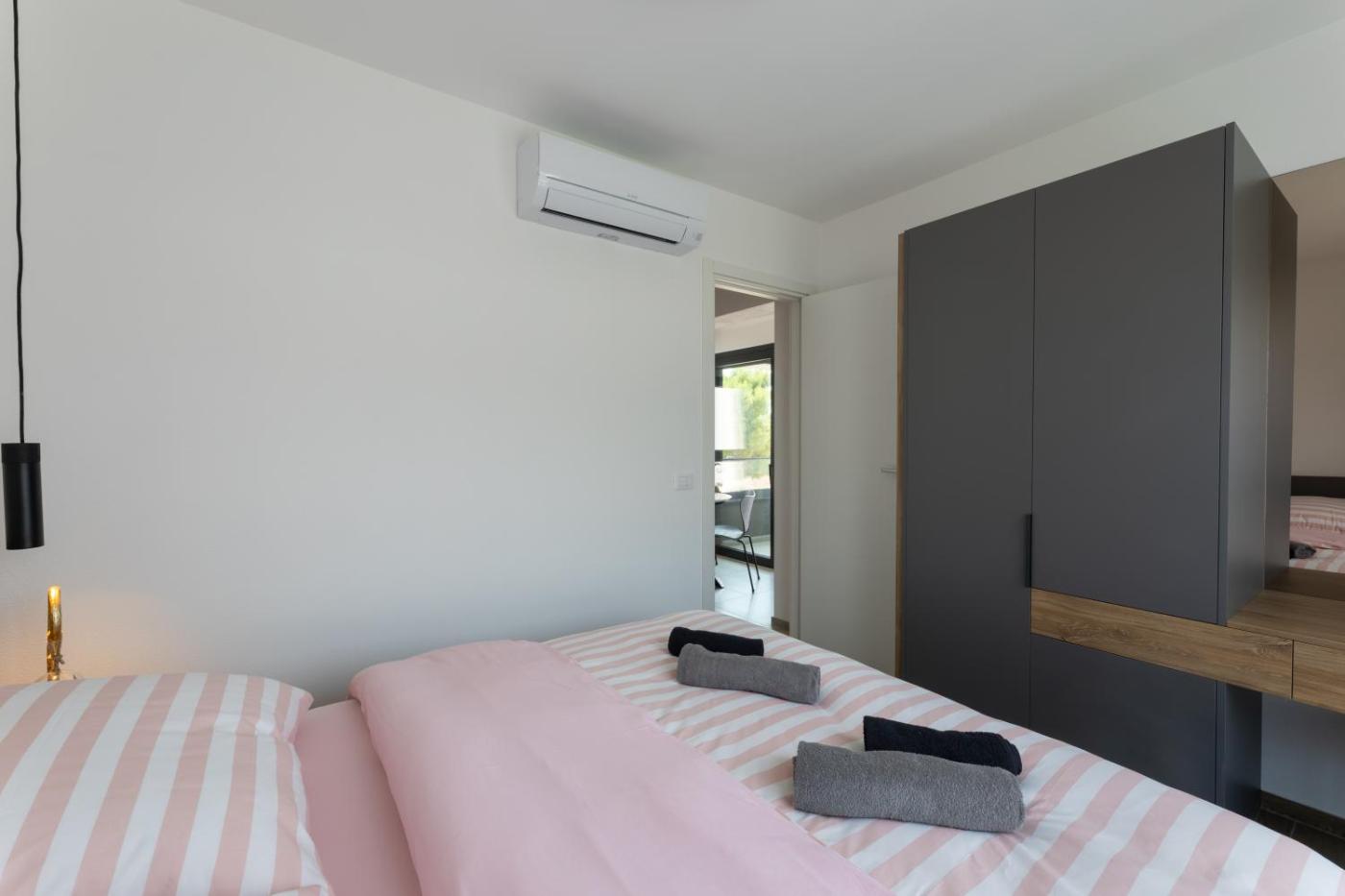 Two-Bedroom Apartment. Guests will find a stovetop, a refrigerator, a dishwasher and kitchenware in the kitchen. The apartment also offers a barbecue. The air-conditioned apartment provides a flat-screen TV with streaming services, a washing machine, a private entrance, soundproof walls as well as sea views. The unit offers 2 beds.