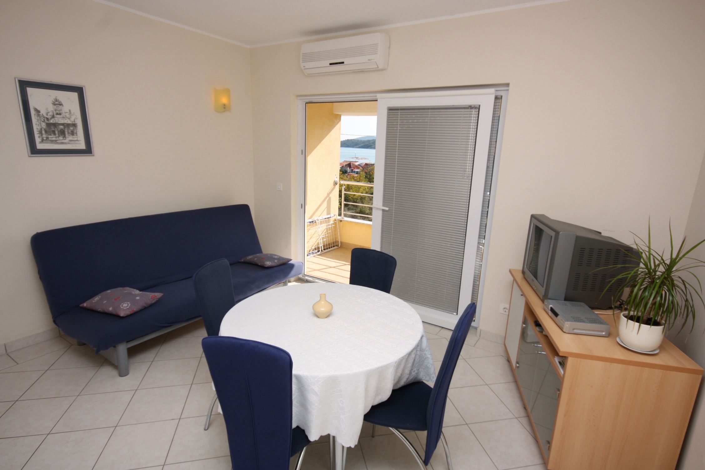 Apartment can accommodate 4 guests. Beds are situated in 1 sleeping rooms, but also in the living room, within 35m2. Guests can use a private terrace to enjoy the warm summer evenings. The apartment offers the sea view. Food can be prepared using barbecue which is shared with other guests too. INCLUDED IN THE PRICE: tourist tax, final cleaning, air-conditioning, parking, internet, laundry, iron, ironing board, hairdryer. OBLIGATORY ADDITIONAL COSTS: short stay fee (surcharge depending on a number of booked nights: 30% - 1, 20% - 2, 10% - 3). The availability of additional services for your chosen dates of stay, as well as their prices (if none are listed) must be checked ahead of time. Any additional services not shown in the price calculation are payable directly to the property owner and only if used by the visitor.
