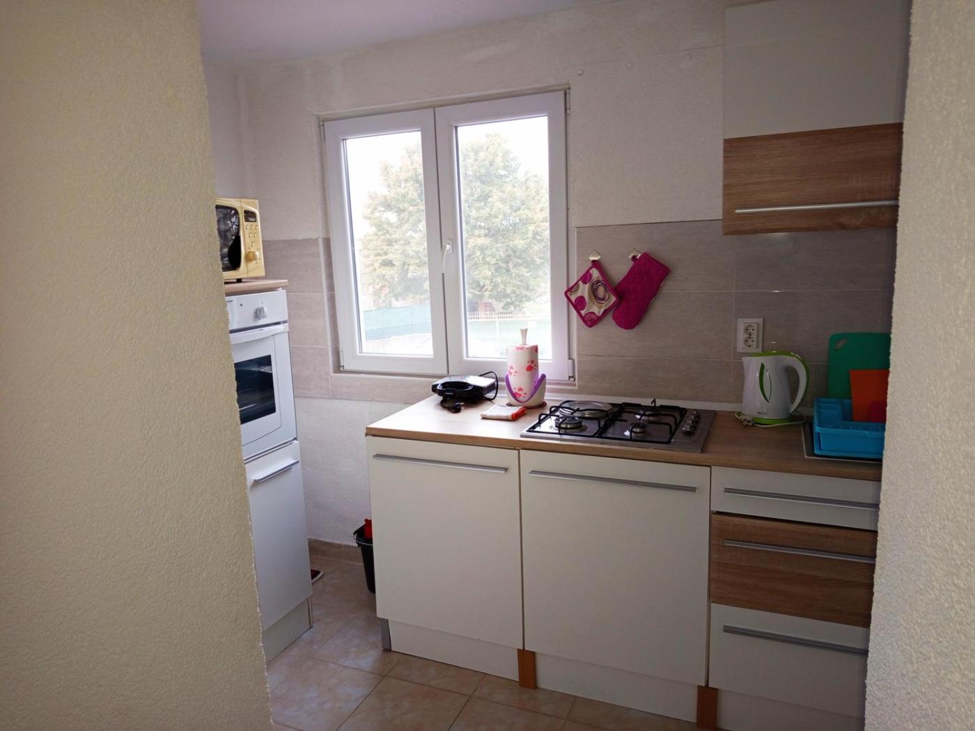 One-Bedroom Apartment. Featuring 1 bedroom and 1 bathroom with a shower, this apartment offers a well-fitted kitchen and a terrace. Guests will find a stovetop, a refrigerator, kitchenware and an oven in the well-equipped kitchen. The apartment also has a barbecue. The air-conditioned apartment offers a flat-screen TV, a washing machine, a wardrobe, an electric kettle as well as ancourtyard view. The unit has 2 beds.