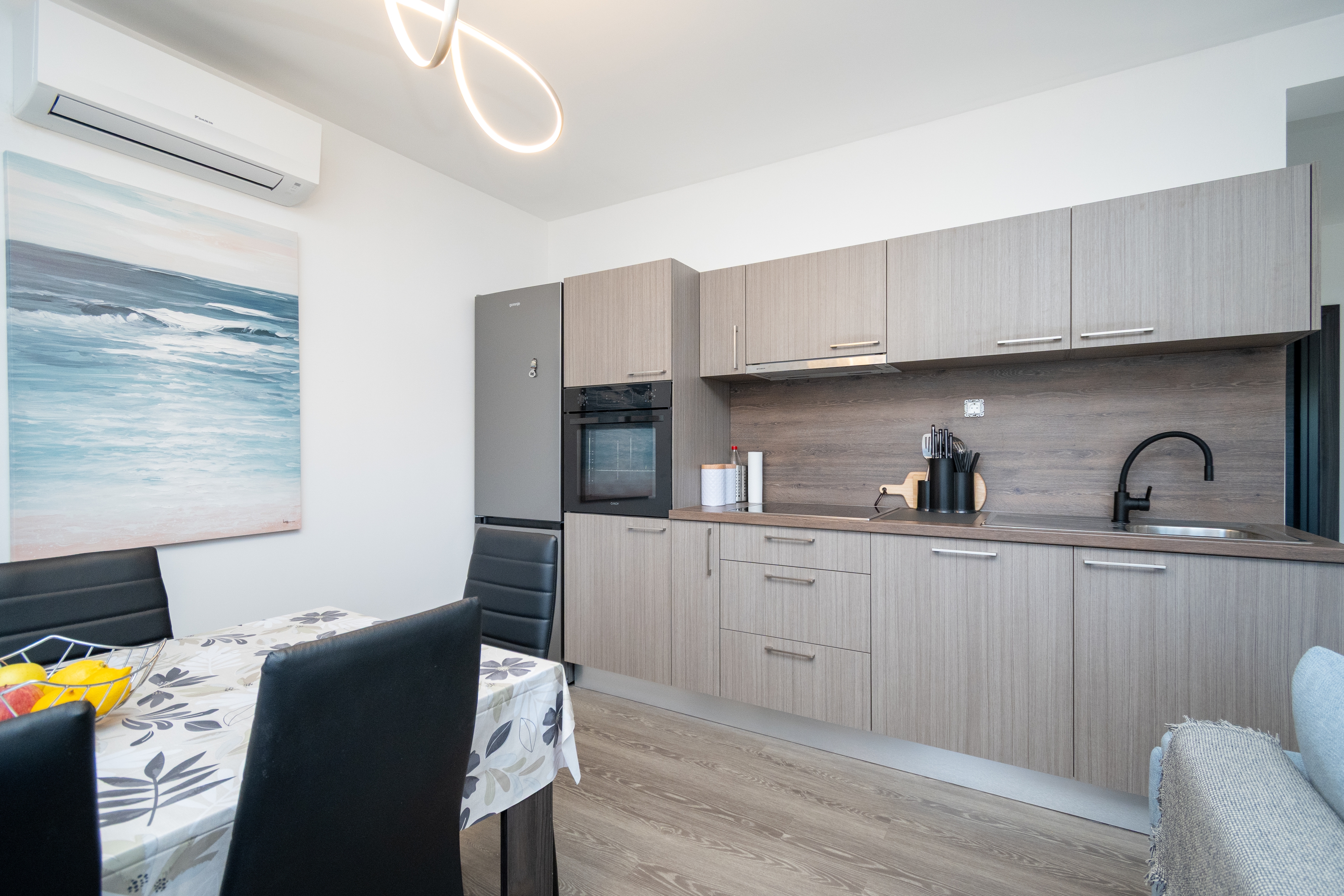 Apartment can accommodate 5 guests. Beds are situated in 2 sleeping rooms, but also in the living room, within 54m2. Guests can use a private terrace to enjoy the warm summer evenings. The apartment offers the sea view. Shared pool is on disposal during stay. INCLUDED IN THE PRICE: tourist tax, final cleaning, air-conditioning, pool, parking, internet, iron, ironing board, hairdryer. The availability of additional services for your chosen dates of stay, as well as their prices (if none are listed) must be checked ahead of time. Any additional services not shown in the price calculation are payable directly to the property owner and only if used by the visitor.