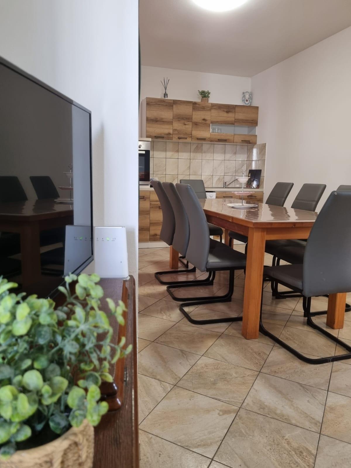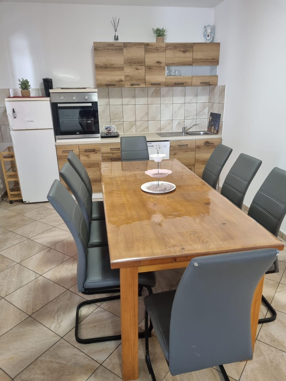 Apartment can accommodate 8 guests. Beds are situated in 2 sleeping rooms, but also in the living room, within 57m2. Guests can use a private terrace to enjoy the warm summer evenings. The apartment offers the sea view. Food can be prepared using barbecue which is shared with other guests too. This accommodation unit welcomes pets at an additional charge. INCLUDED IN THE PRICE: tourist tax, final cleaning, air-conditioning, parking, internet, laundry. OBLIGATORY ADDITIONAL COSTS: short stay fee (surcharge depending on a number of booked nights: 30% - 1, 20% - 2, 10% - 3). OPTIONAL ADDITIONAL COSTS: pets (€5.00 per night). The availability of additional services for your chosen dates of stay, as well as their prices (if none are listed) must be checked ahead of time. Any additional services not shown in the price calculation are payable directly to the property owner and only if used by the visitor. Discounts to the base price: free day 14=13 (for reservations of 14 or more days you get one free day for the stay until 31122026).