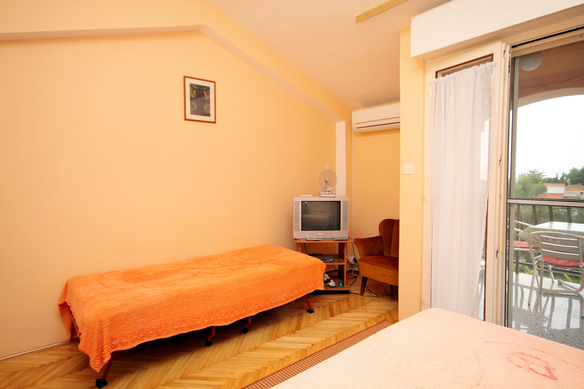 Apartment can accommodate 2 guests. Beds are situated in 1 sleeping rooms, within 29m2. Guests can use a private terrace to enjoy the warm summer evenings. The apartment offers the sea view. Food can be prepared using barbecue which is shared with other guests too. INCLUDED IN THE PRICE: tourist tax, final cleaning, parking, internet. OBLIGATORY ADDITIONAL COSTS: short stay fee (surcharge depending on a number of booked nights: 30% - 1, 20% - 2, 10% - 3). OPTIONAL ADDITIONAL COSTS: air-conditioning (€10.00 per night), laundry (€7.00 washing). The availability of additional services for your chosen dates of stay, as well as their prices (if none are listed) must be checked ahead of time. Any additional services not shown in the price calculation are payable directly to the property owner and only if used by the visitor. Discounts to the base price: free day 14=13 (for reservations of 14 or more days you get one free day for the stay until 31122026).