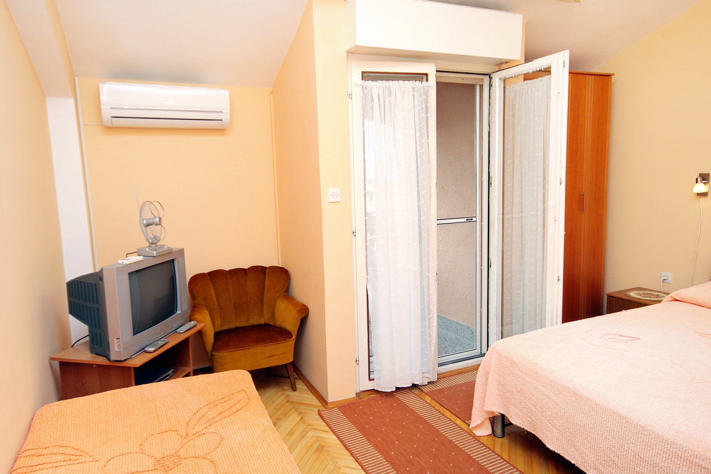 House 5880 in the town of Zadar - Diklo, Zadar - North Dalmatia has accommodation units of type Apartment (6) and is 250 m away from the sea. The nearest beach to this accommodation is a concrete slabs beach. As the house is dividedseveral accommodation units, other guests will most likely be present during your stay. The hosts will be in the house during your holiday. The house owner is under no obligation to accept additional persons and pets that were not stated in the reservation request and it is necessary to report them in advance.AMENITIES Courtyard (150m2, Area suitable for children, Sitting area), Parking lot (Number of parking spaces: 5, Distance from the house: In the courtyard), Barbecue: shared, WiFi Internet, Laundry service LOCATION AND ACCESS Main road between the property and the beach Car access possible: Yes The facility is situated in relatively quiet surroundings The property isnt surrounded by greenery DISTANCES Sea: 250 m Beach: 250 m Center: 5.5 km Shop: 330 m Urgent medical care: 5.5 km Pharmacy: 1.1 km Exchange office: 1.2 km ATMBank machine: 330 m Tourist info: 330 m