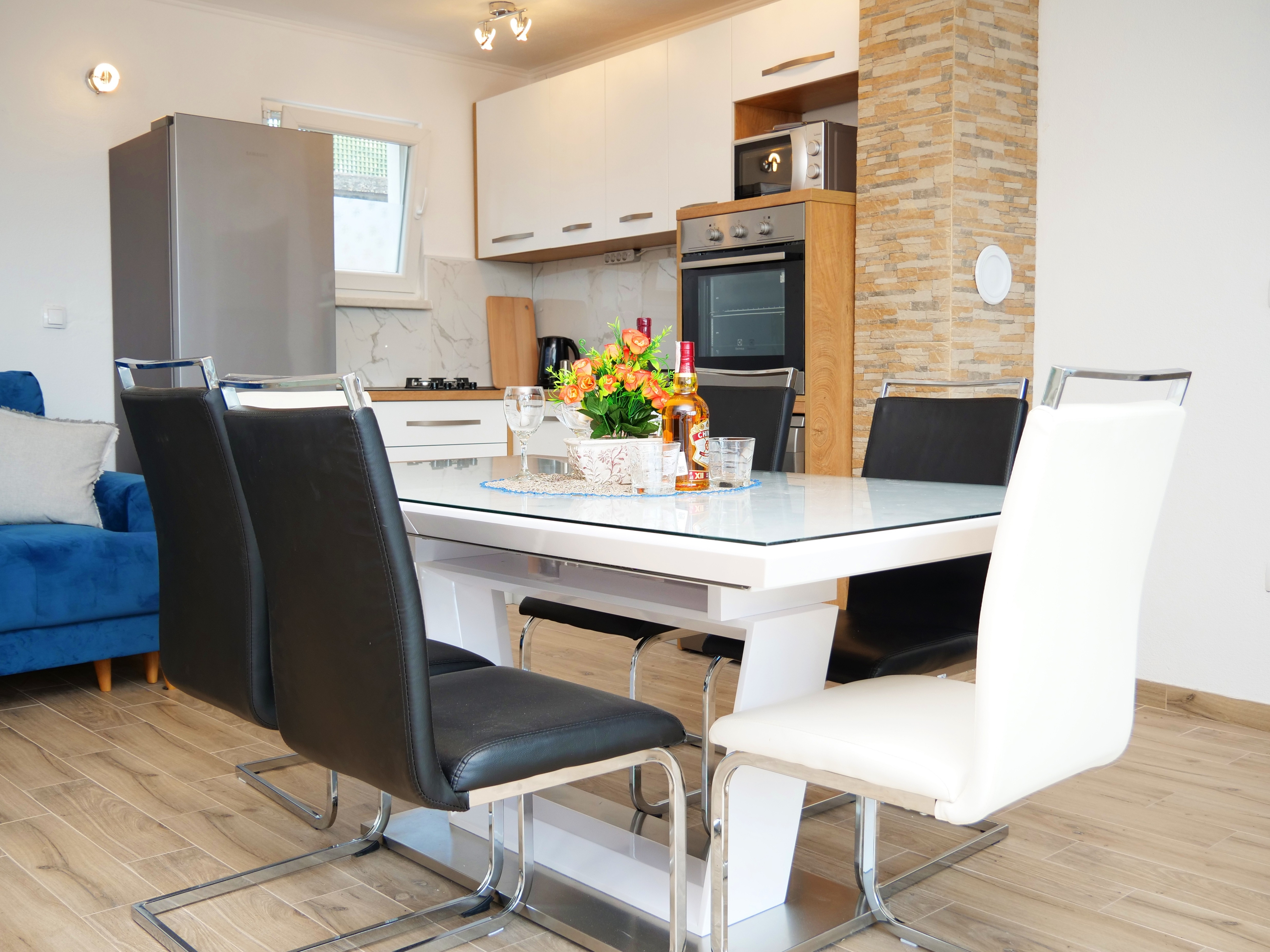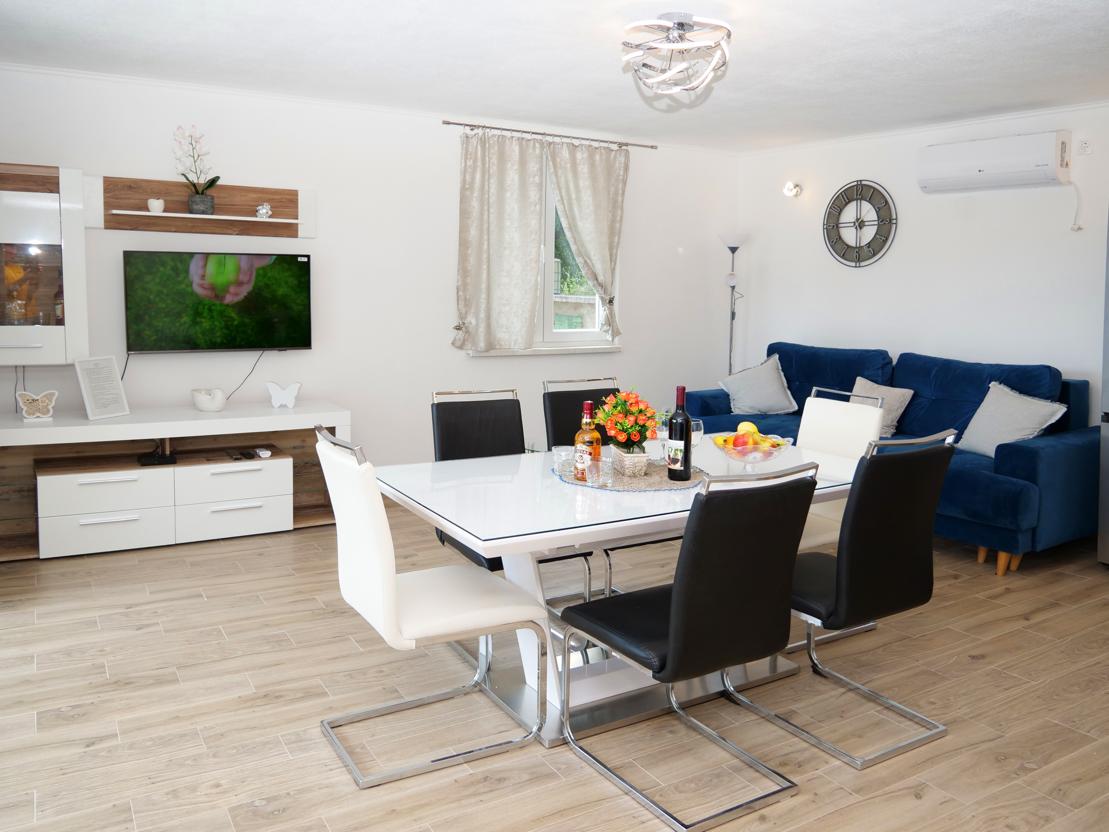 House can accommodate 8 guests. Beds are situated in 3 sleeping rooms, but also in the living room, within 80m2. Guests can use a private terrace to enjoy the warm summer evenings. For full enjoyment and relaxation there is a private barbecue for this accommodation guests only. During stay, there is a private pool for relaxation and pleasure. INCLUDED IN THE PRICE: tourist tax, final cleaning, air-conditioning, pool, parking, internet, baby cot, iron, ironing board, hairdryer. The availability of additional services for your chosen dates of stay, as well as their prices (if none are listed) must be checked ahead of time. Any additional services not shown in the price calculation are payable directly to the property owner and only if used by the visitor. Discounts to the base price: free day 14=13 (for reservations of 14 or more days you get one free day for the stay until 31122026).